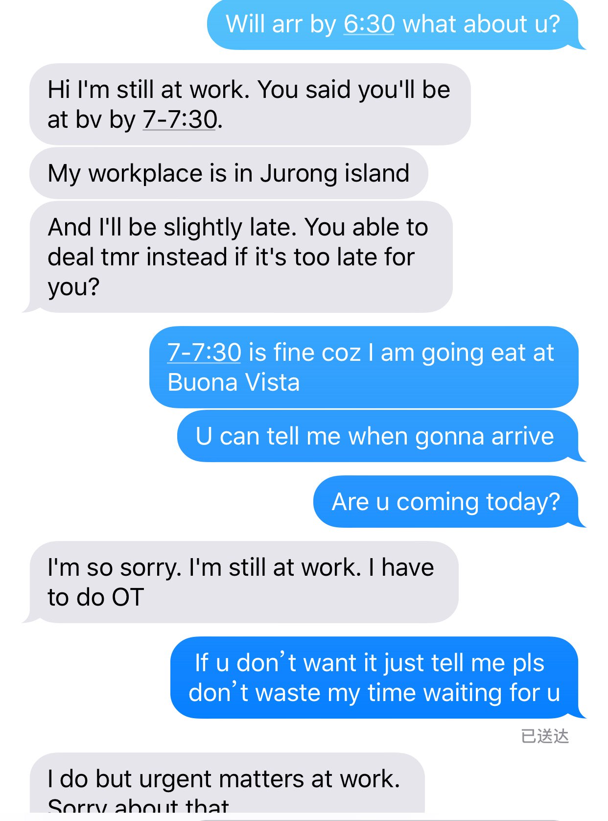 别难过啦我那天也是在bv地铁站从6:30等到快八点 我在软件和她说7-7:30也OK