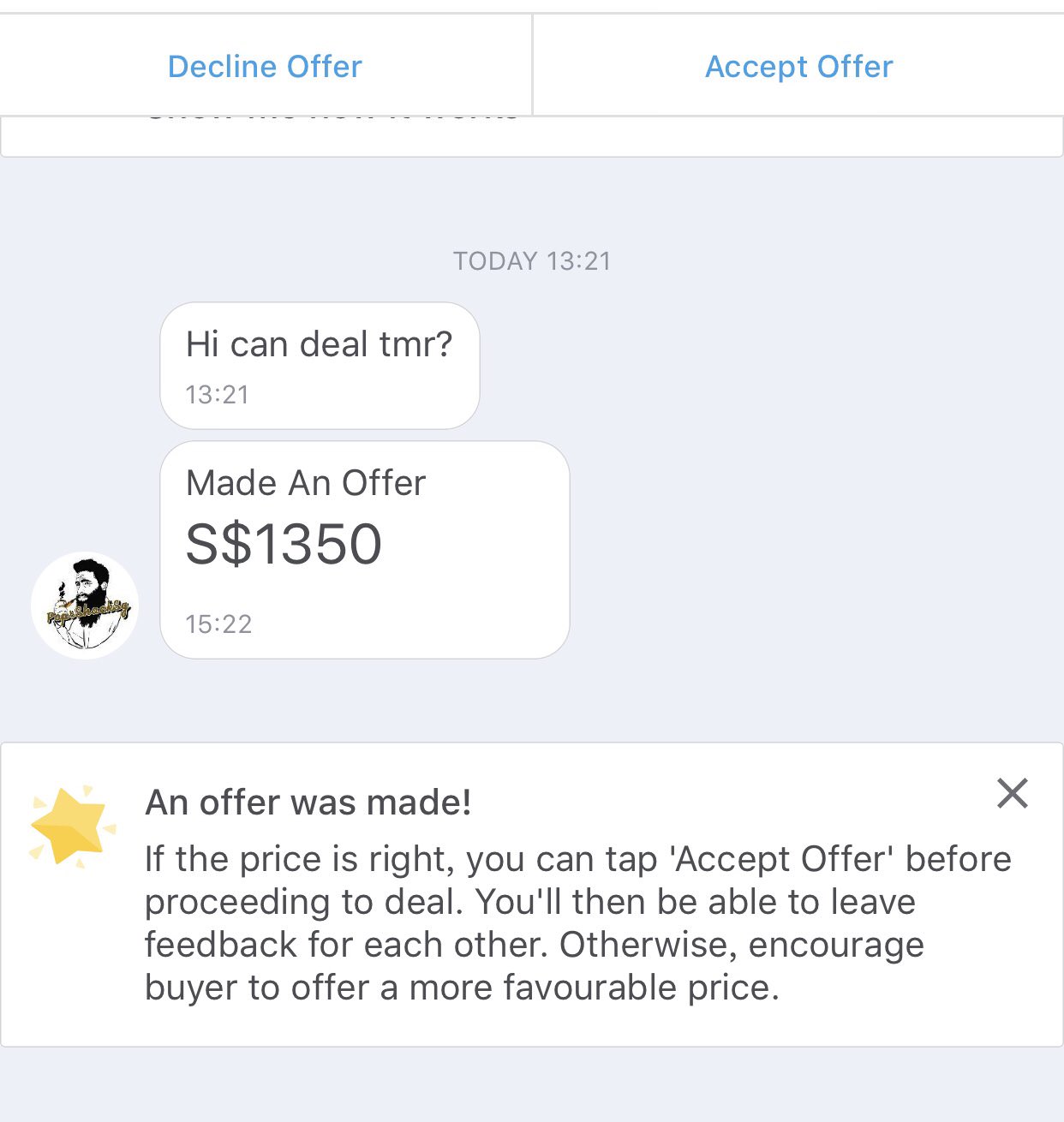 4. 对于不愁卖的东西一定不要操之过急。lz这次也是吃了想赶紧卖完省心的亏。竟然秀逗了跑那么远去送给货。对比下市场价,大家普遍要1400,你要1350,又是热门产品,买家一定不会少,只是有些买家没立即看到广告而已。lz广告放了两天,30个offer。昨天一天Carousell又有三人出价1350自取,看评价都是靠谱买家。只要价格合理,略低于市场价,很快会卖出去。 -