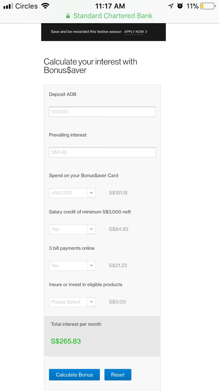 我和楼上boc+ uob的组合一样。一共可以放11w拿3+%的利息 -