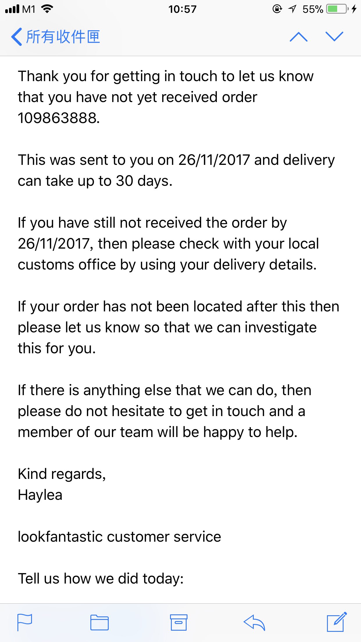 结果回复日期写得我看不懂,还叫我去问custom office?我现在是该等呢,还是该真的去问海关?如果要问海关,该怎么问?去哪里找?头痛……