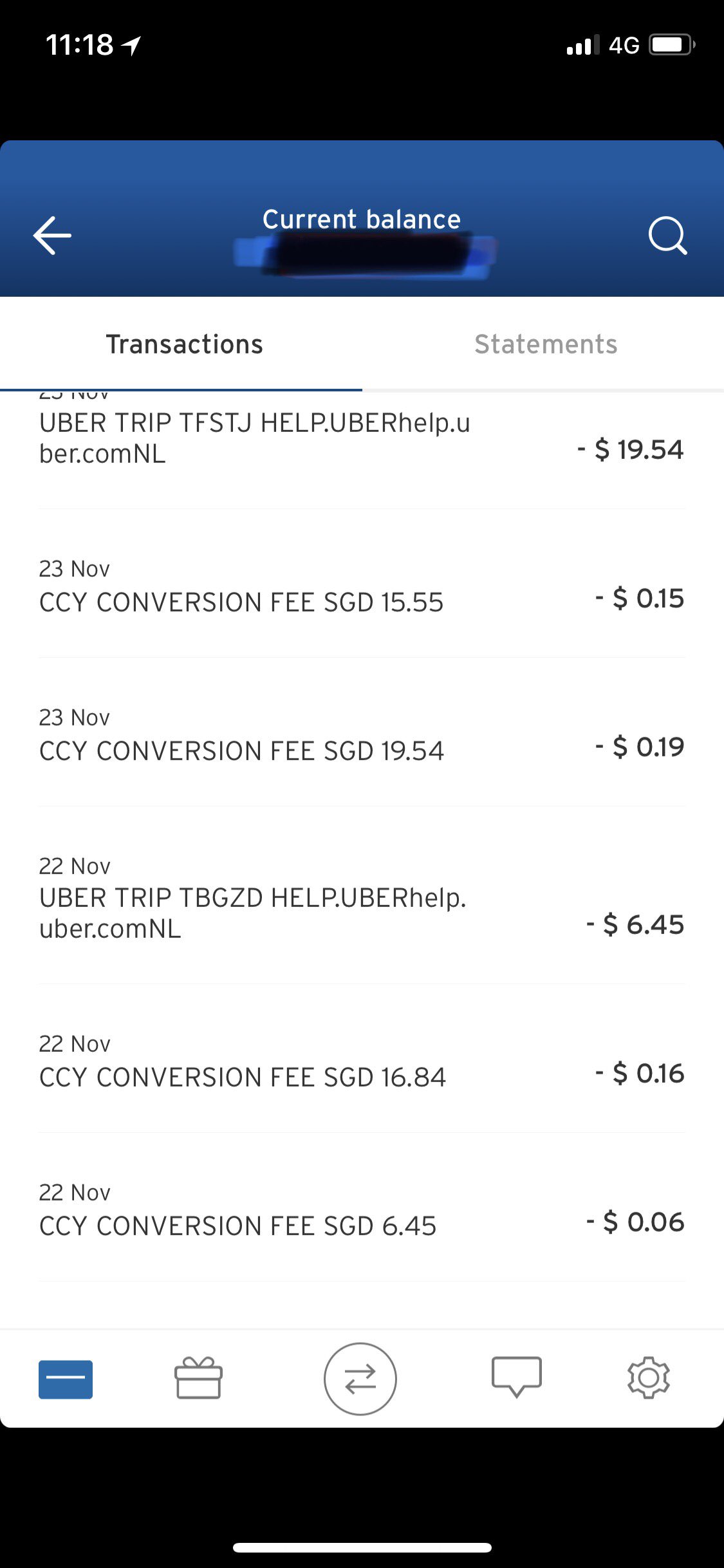 熊猫知不知道这个操作?我查了我绑定的grab 的信用卡… 貌似他们每一笔单子结算后面都会在charge 我0.10毛… 或者0.07什么的… 你们有同样的情况吗?我打了电话… 他们说是grab的总公司在中国,所以结算要多收手续费?这是什么鬼?感觉被默默的薅羊毛…