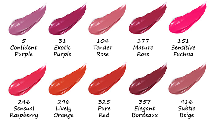 具体颜色请参考官方试色图,请注意下细的那一条是唇线笔的试色。