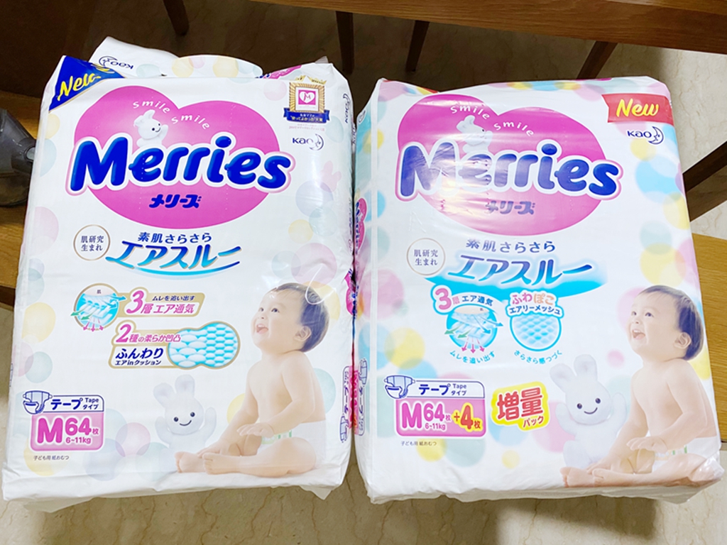 218. 花王Merries增量版婴儿纸尿裤M64+4/64 共四包,打包SGD52