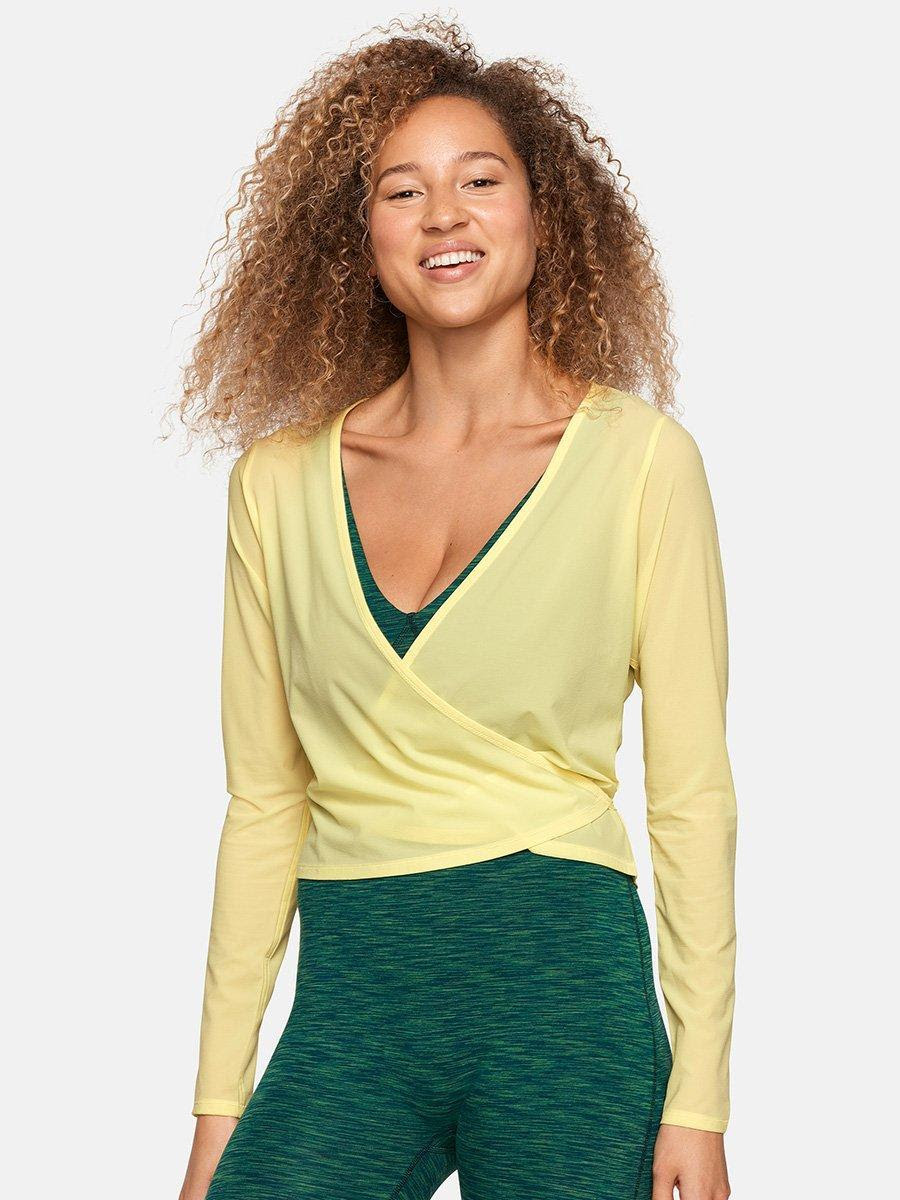 209. 全新Outdoor Voice TissueWeave Wrap Top系带上衣柠檬黄M,SGD15