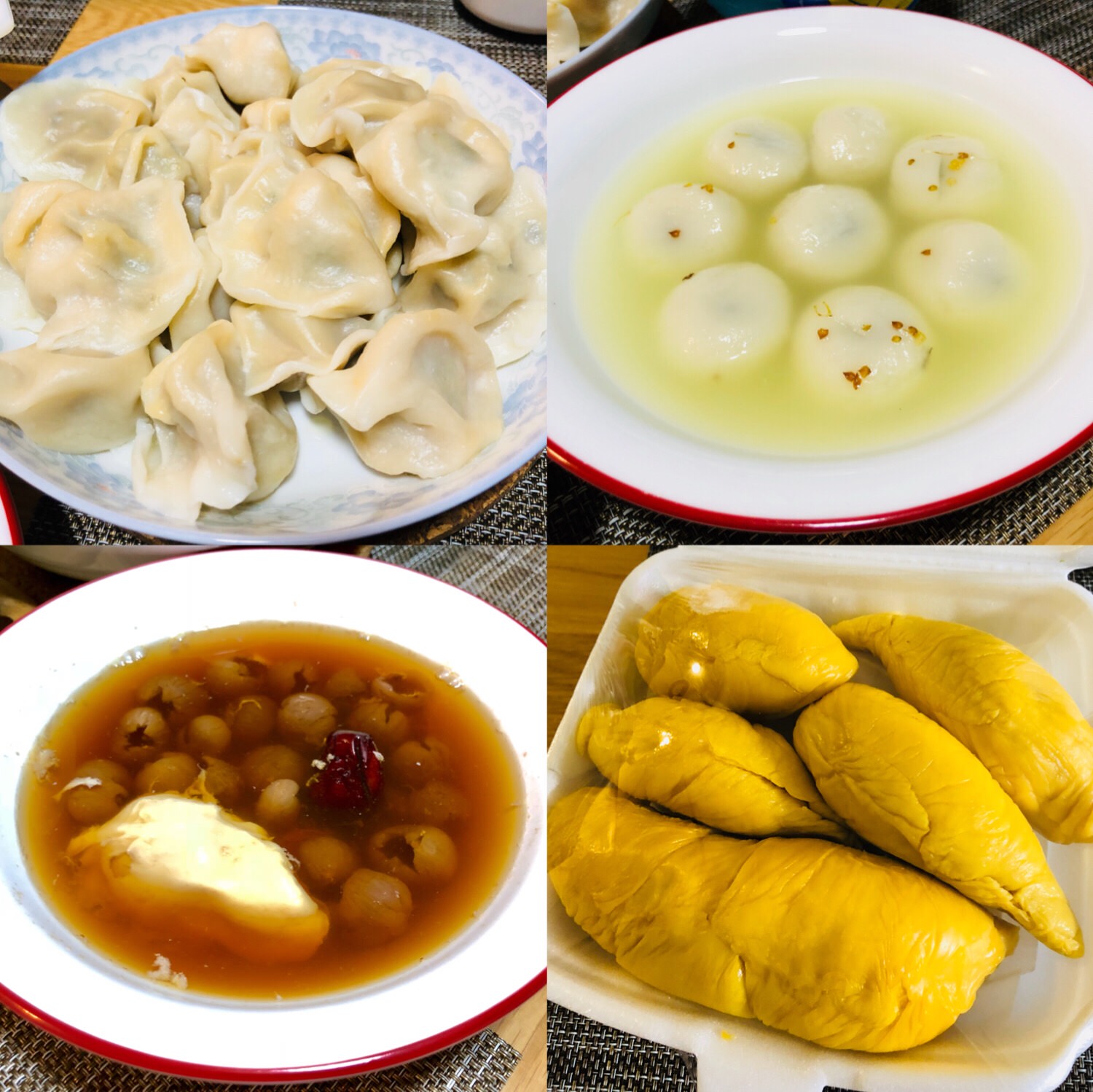 饺子汤圆桂圆炖蛋猫山王今天都吃了,南北方南洋的都不放过哈哈