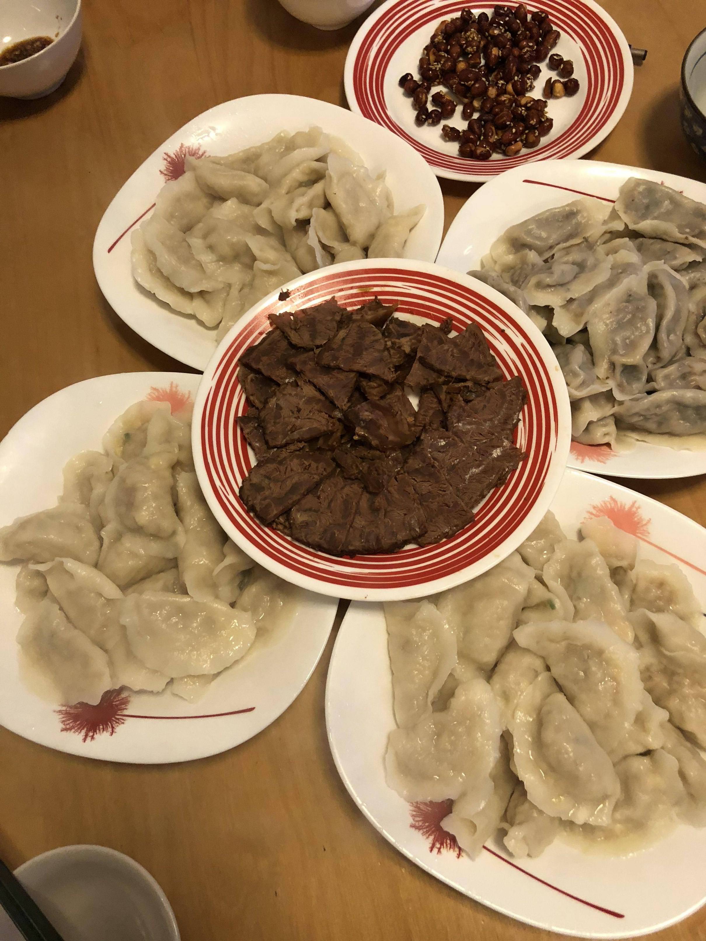 哇哈哈那一粒饺子好萌啊站在盘子边缘。。。