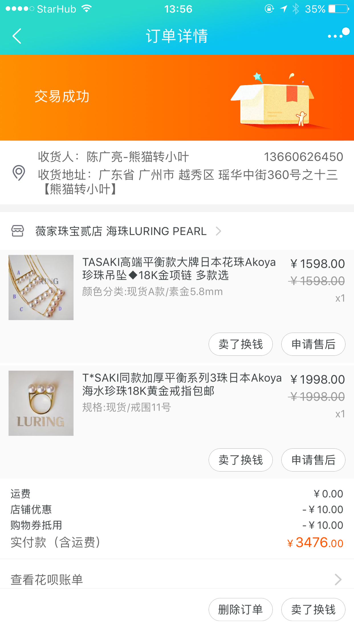 4. 薇家 tasaki同款日本Akoya珍珠平衡戒指,三珠款,SGD190人民币1998买的,戴过大概两回。