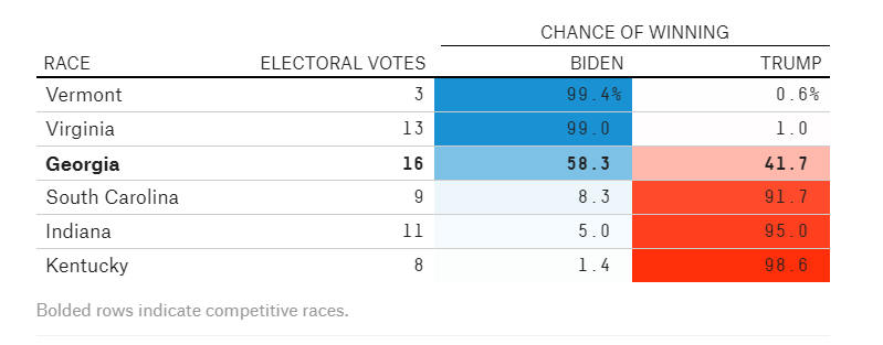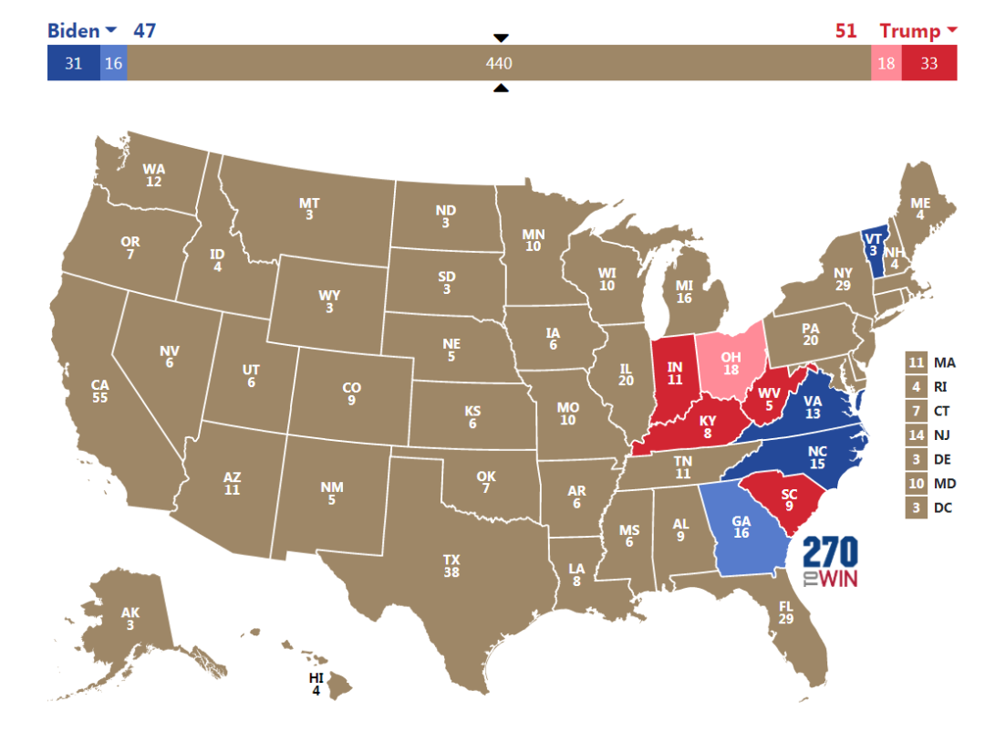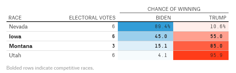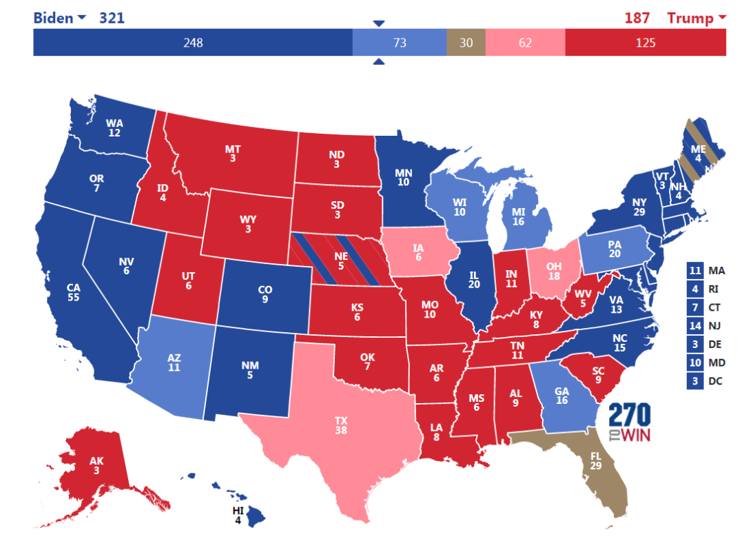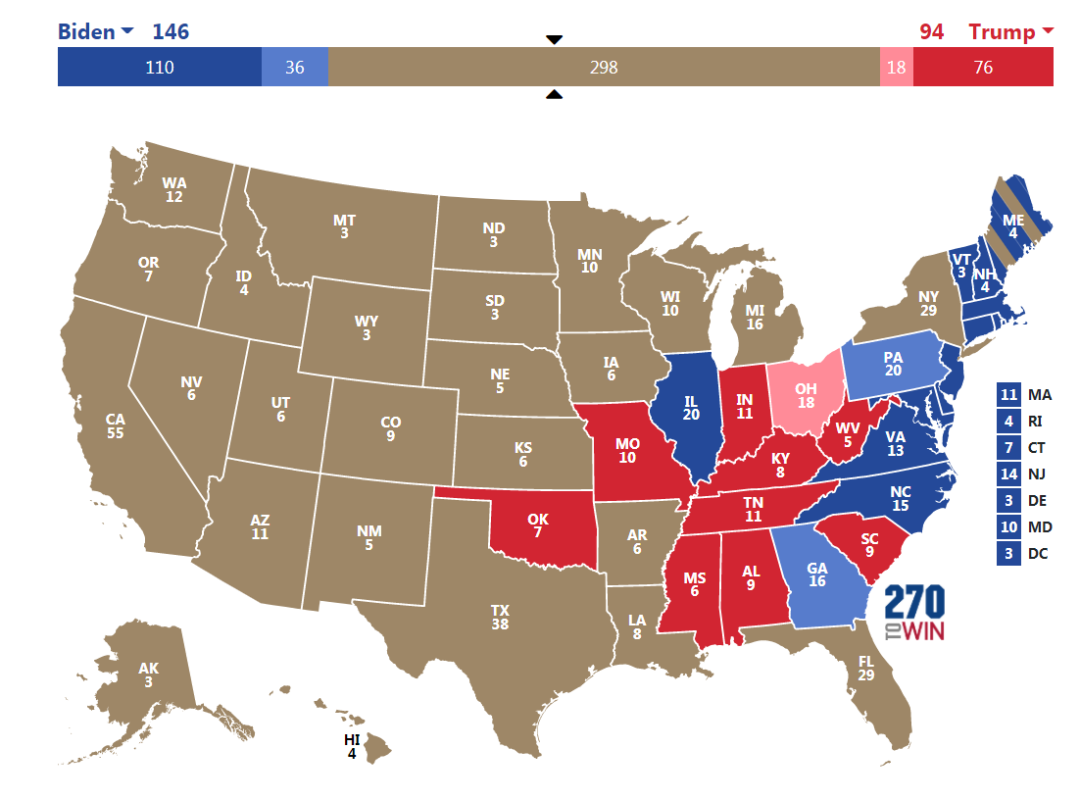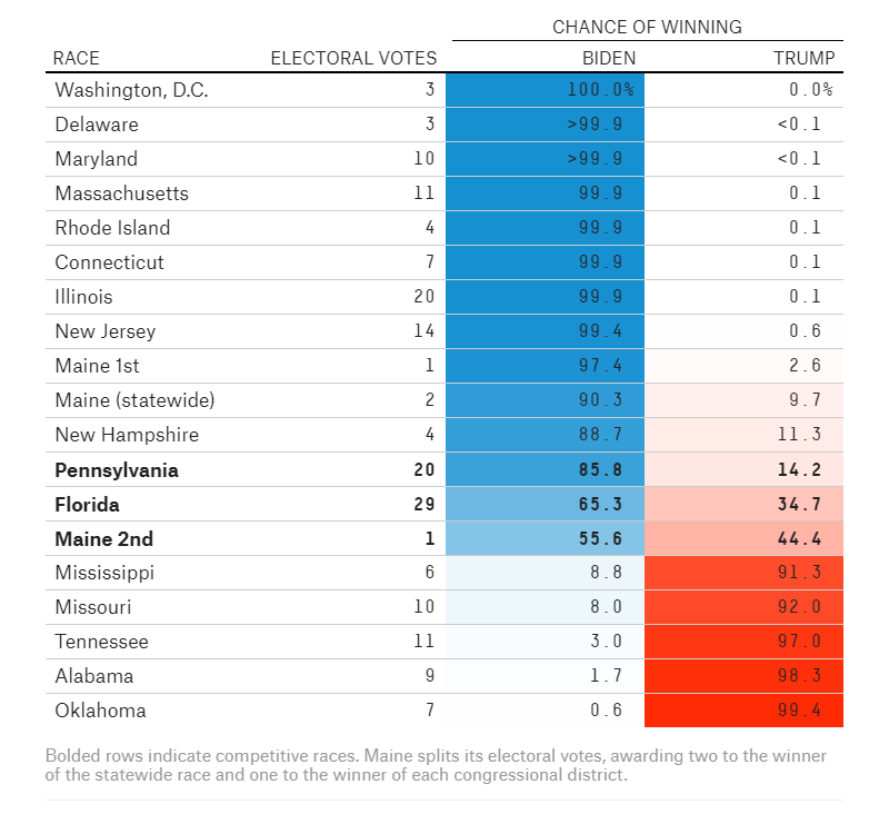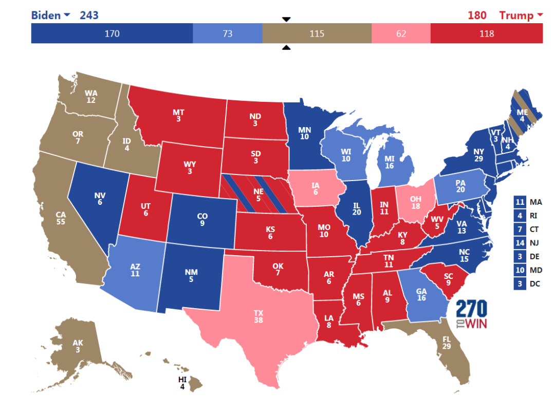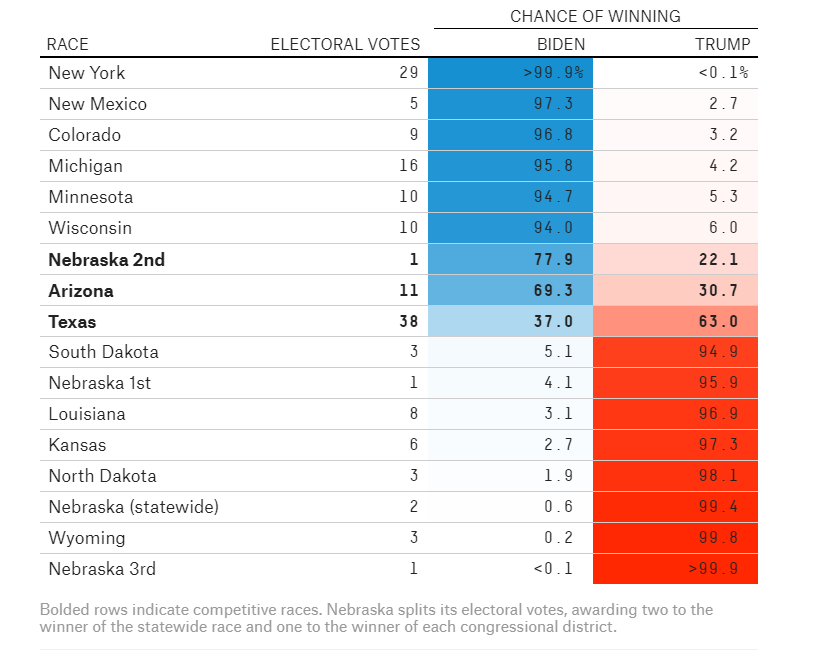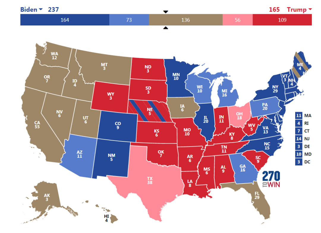 1. Both Candidates Might Fall Short Of 270 Electoral Votes On Election Night. But How Close Might They Get?, Nathaniel Rakich, Fivethirtyeight, 2020.10.31