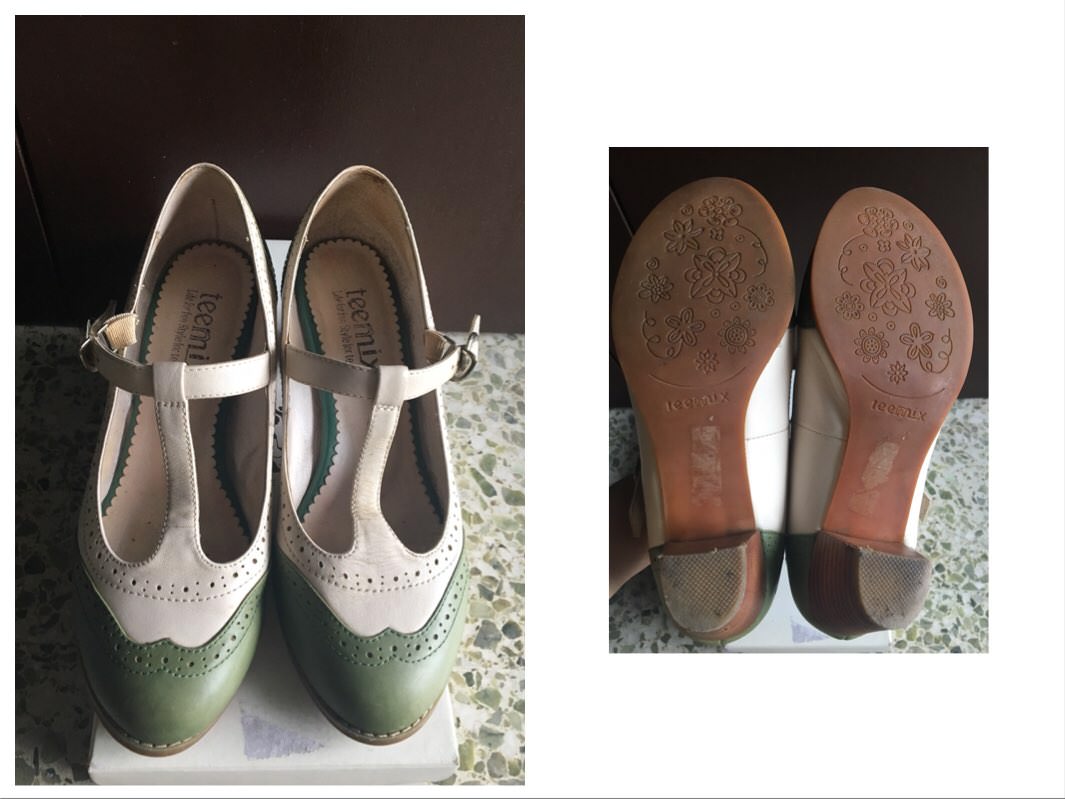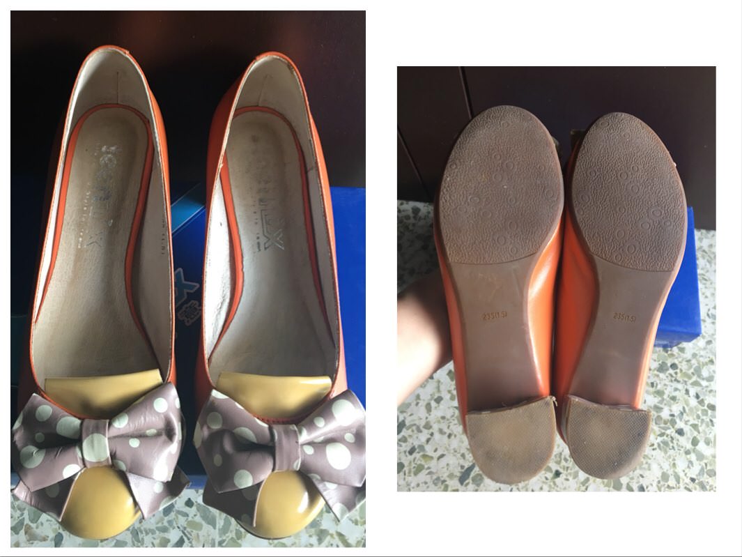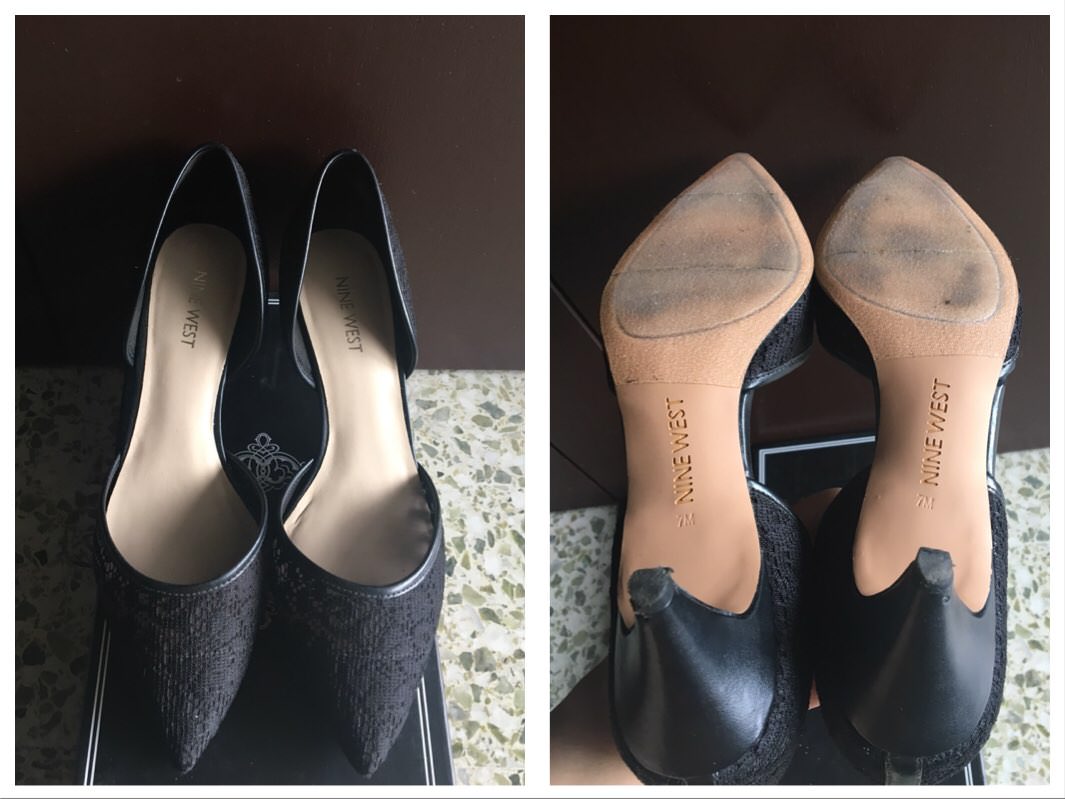 2. Nine West中跟鞋之前还多囤了一双,在版上转过一双一模一样的新的,这双穿的次数也不多。鞋底贴了防滑贴,鞋跟处有磨损,见图。