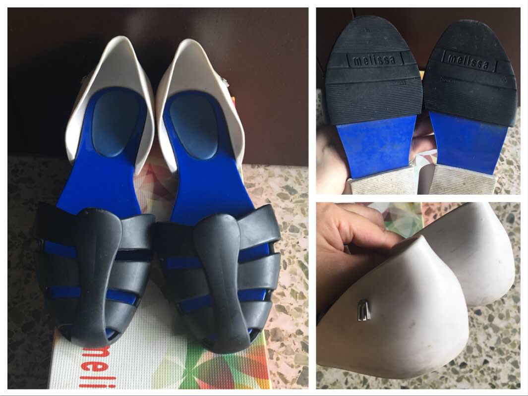 5. Melissa黑白拼接凉鞋7号。白色后跟处有摩擦痕迹。