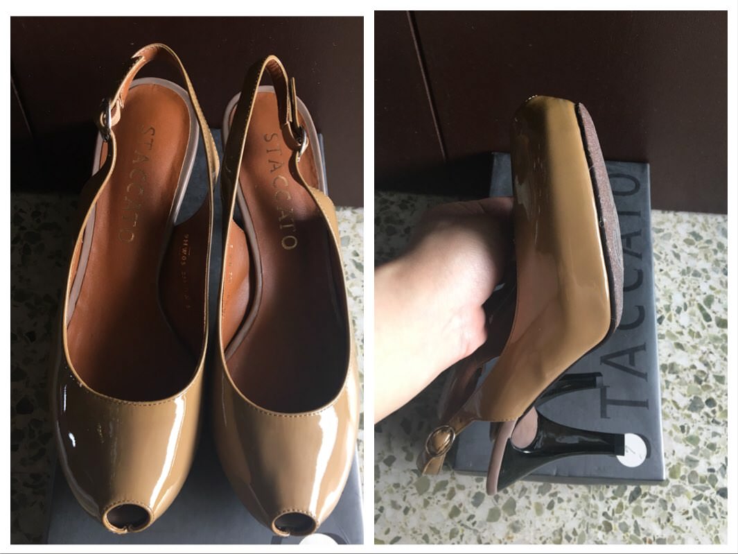 Staccato思加图凉鞋这双最新,基本没有穿出门过,鞋底贴了防滑贴,鞋跟大概6cm,无磨损。脚掌有垫,走路无鸭梨。