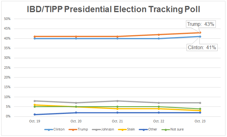 IBD/TIPP Poll: 特朗普领先希拉莉两个百分点 (43% vs 41%)