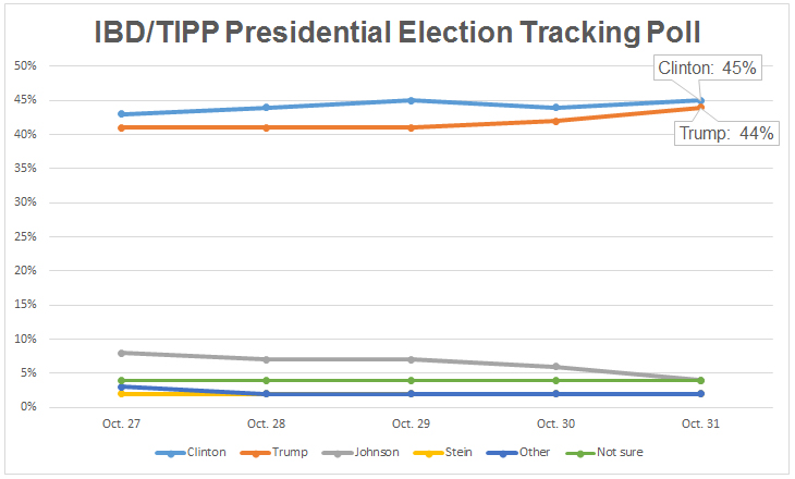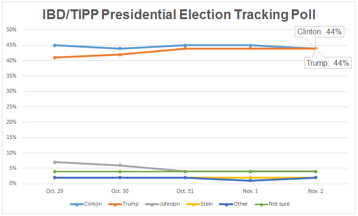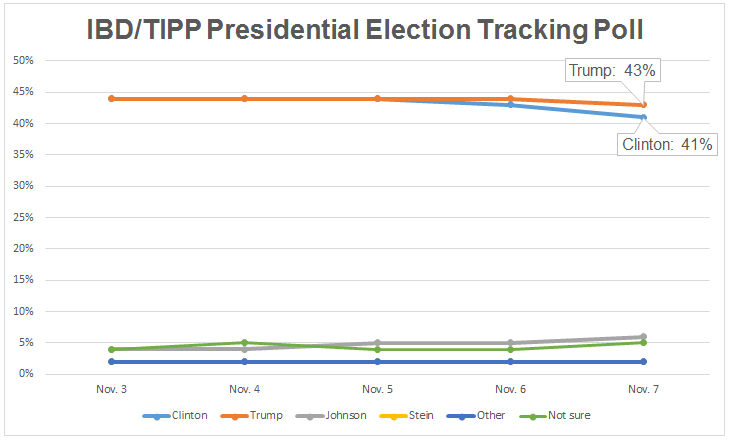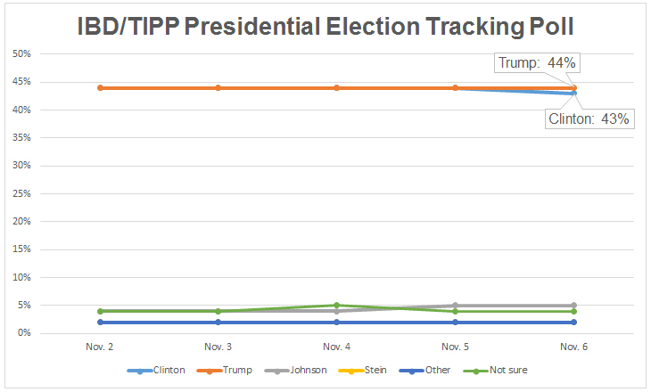 Final IBD/TIPP Poll ResultsTrump Holds 2-Point Lead Over Clinton As Election Day Arrives: IBD/TIPP Poll