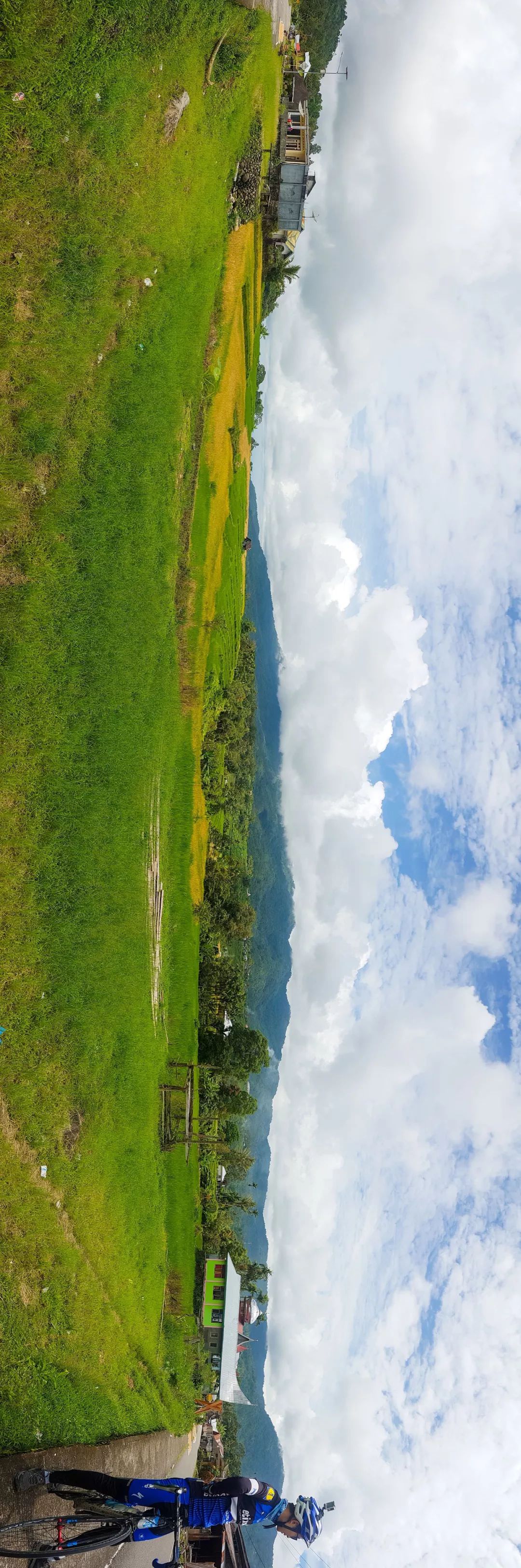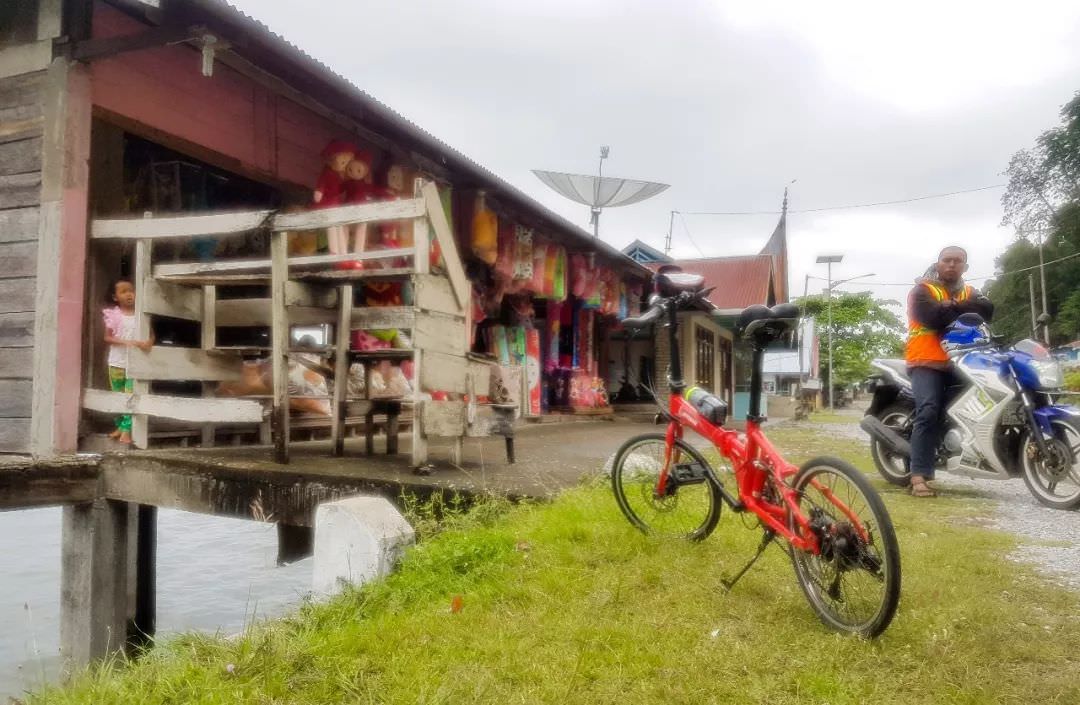 这 天的路程开始是一段沿着辛卡拉克singkarak湖的平路,风景还不错。过了湖开始爬长坡,总共24km,爬升700多米,虽然看着也缓,但是坡度不是 均匀的,有的平,有的很陡,不过我全程都撑下来了,除了歇息和拍照,没有下车推过。在一个大陡坡,骑摩托的向导在我旁边跟了一段,问我感觉如何,如果需要 他可以帮我,我谢绝了。后来看到他说的帮忙,就是骑着摩托,伸一只手在车手的背部推上去。