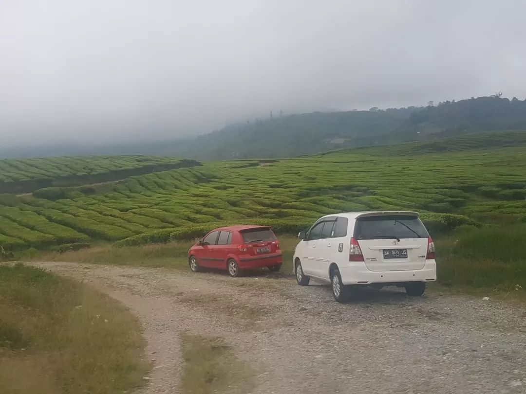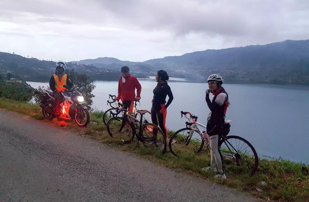 傍晚时分我们到了迪吧瓦赫(dibawah)湖,沿着湖边走了一段,如果天气好那必定是不错的景色。大家在湖边留影,天就黑了,又骑了一段,下起雨来,于是收了车子都上面包车前往当日的终点。