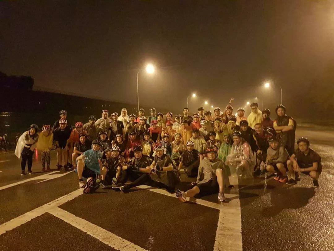 风卷着雨急切地迎面打来,手背和脸上传来连绵不绝的撞击,就连头皮也能感受到雨滴在头盔上制造的小震动, 噼啪的声音透过头骨传至耳膜,和空气里哗哗的雨声合奏成曲。趁着等待红灯,我伸手指把眼镜内侧凝结的水珠抹掉,终于能辨识前方道路和交通灯,拖着白雾横行 而过的汽车,以及周围十几个骑车伙伴。伙伴们默默望着前方,雨水覆盖了他们的脸,又从下巴飞流而下,偶有几句交谈,声音也仿佛被水膜裹住和浸润一般潮湿而 模糊。这是2017年末的跨年环岛骑行,雨已经下了一天,大多数人都没想到夜里还能继续落这么大这么久的雨,对此准备不足。这个注定无法目睹日出的活动因 此有了一种新奇感受。