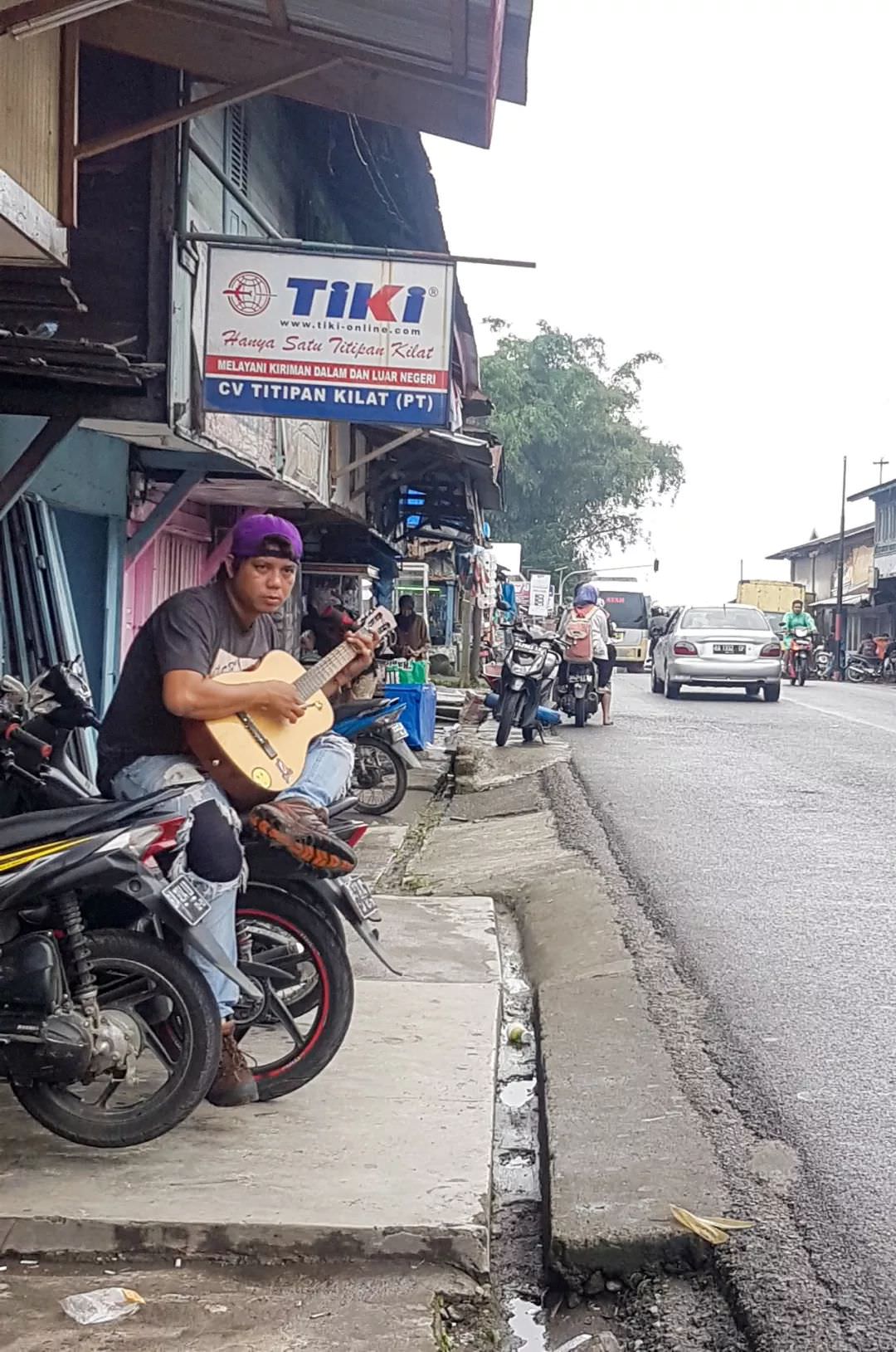 一 路上我都在留意路边有没有修车的地方,但是路过的看起来都是依附公路修起来的小村子,没看到有修自行车的店铺。justin安慰我说目的地索洛克 solok是一个比较大的城市,应该会有。一路小雨不断,晚上9点多到索洛克。找了个饭店吃饭,饭前我还穿越一段百多米的黑暗地带去一个路边的疑似修车店 询问能不能修车,无果。回来时一个摩的跟我走了一路,我一再示意不需要坐他的摩托车,心怀不安直到走到饭店门口我速度走入大门他才离开。吃完饭又上车到了 一个简易旅馆住下,此时天上下起了瓢泼大雨,且持续了几乎整夜,我想着爬山队该怎么办呀,我的车明天能不能修好啊,不知不觉就睡着了。事后得知,爬山队非 常惨,麻辣皮火山真不赏脸(今年圣诞我也去了,一样不赏脸,看了个全无风景的火山)