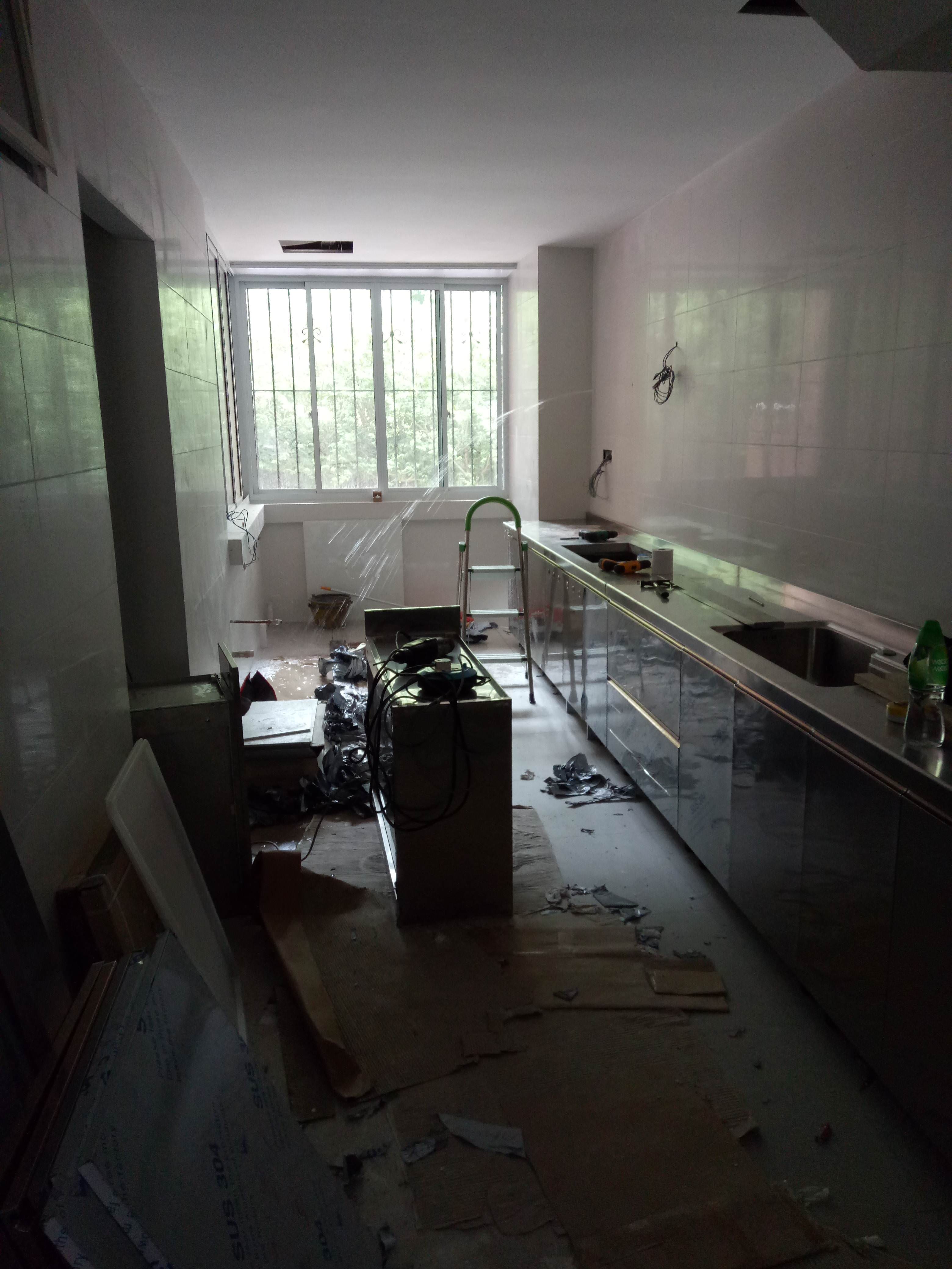 蒲公英 • • 33643 次浏览我淘宝那些大件儿 1 – 不锈钢橱柜 @信长 @嘉兽 @2m16s去年的买房心愿顺利达成了,最后买了一套面积大同时房龄非常大的房子。房子的状况非常差,需要全部重新装修。因为家里有小娃,还是打算从简装修。主要做的项目就是水电,厕所,厨房。我对味道非常敏感,小娃也是,所以对要做柜子是非常抵触的。现在家里的板材橱柜,用了五年味道还没有散尽,衣柜稍微好一点。于是我就开始探索各种可能性。最吸引我的是不锈钢橱柜和实木衣柜。各方面权衡之后,决定从淘宝定制一整套不锈钢橱柜,衣柜还是由ID的木工做(只做客卧)。在这个过程中我的小伙伴信长给我特别多的鼓励和陪伴完全没有泼我冷水(导致我在坑里越踩越 深),我要表示特别感谢。另外特别感谢嘉兽师兄的各种技术支持。小伙伴2m16s非常无私的分享各种装修信息。装修好贴版上非常多了,我也是认真参考过,反复钻研过小叶的帖子,双儿 推荐给我的ID和木工也都是不可或缺的。深深的感谢。希望我的帖子也能给其他需要做橱柜的小伙伴们一些信息和帮助。这篇不会很长,因为我写着写着就觉得这也太事无巨细了吧。目录如下。1.前期1a. 先决条件1b. 准备工作2.中期2a. 选择2b. 设计3.后期3a. 海运3b. 安装4.坑我想挑个什么图镇楼比较好呢,选了一下还是挑这张全部敲干净的吧。