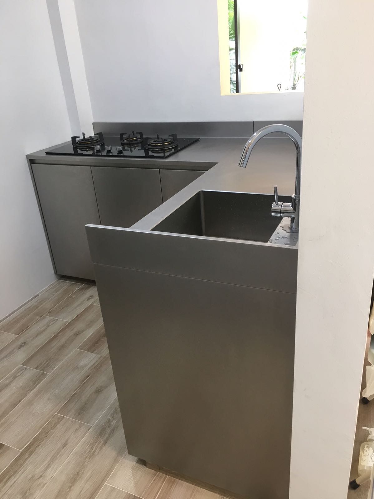 如果并不是特别想要/需要,那一定是板材的比较省钱省力可能还更美观。这两种材质可以说各有利弊,是个人选择不是绝对碾压。在此我就不多讨论优劣以及不锈钢在新加坡是否适用了。我本身是非常想要不锈钢的,而且愿意为此花更多的精力。我最初打算是40尺的橱柜,就是吊柜地柜各六米。日本的clean up太贵了没有去问报价。问了本地的一家做不锈钢的,看了图觉得还不错。报价是两万多包括tower,不要tower减三千。他家据说五金都是blum的。这个价格对我来说还是太贵了,而且没有买家的评价我不太放心(当然主要是没钱)。