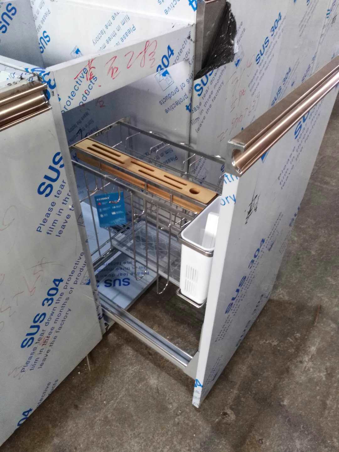 这里的选择是指选择哪个卖家/厂家的橱柜。前后一共谈了四五家,价格都不一样。买家秀当然不能放过。我一般还会问两个问题,螺丝配件那些用的是不是304,五金是什么牌子的。要是问我懂不懂怎么挑选,我真不懂。在我不懂的问题上,我需要找一个专业的人来指导,正好谈到的这个卖家感觉很专业,用的铰链滑轨都是blum的,满额赠送的拉篮是悍高的。窃以为在细节上舍得花钱的品质一般都是不错的(当然也不是绝对)。他们出具的合同看起来也比较正规。在售前售后有任何问题也马上解决,我的各种提问非常多,不管周六周日基本都是非常迅速回复的。所以最终定下了这一家。链接我就不放了。