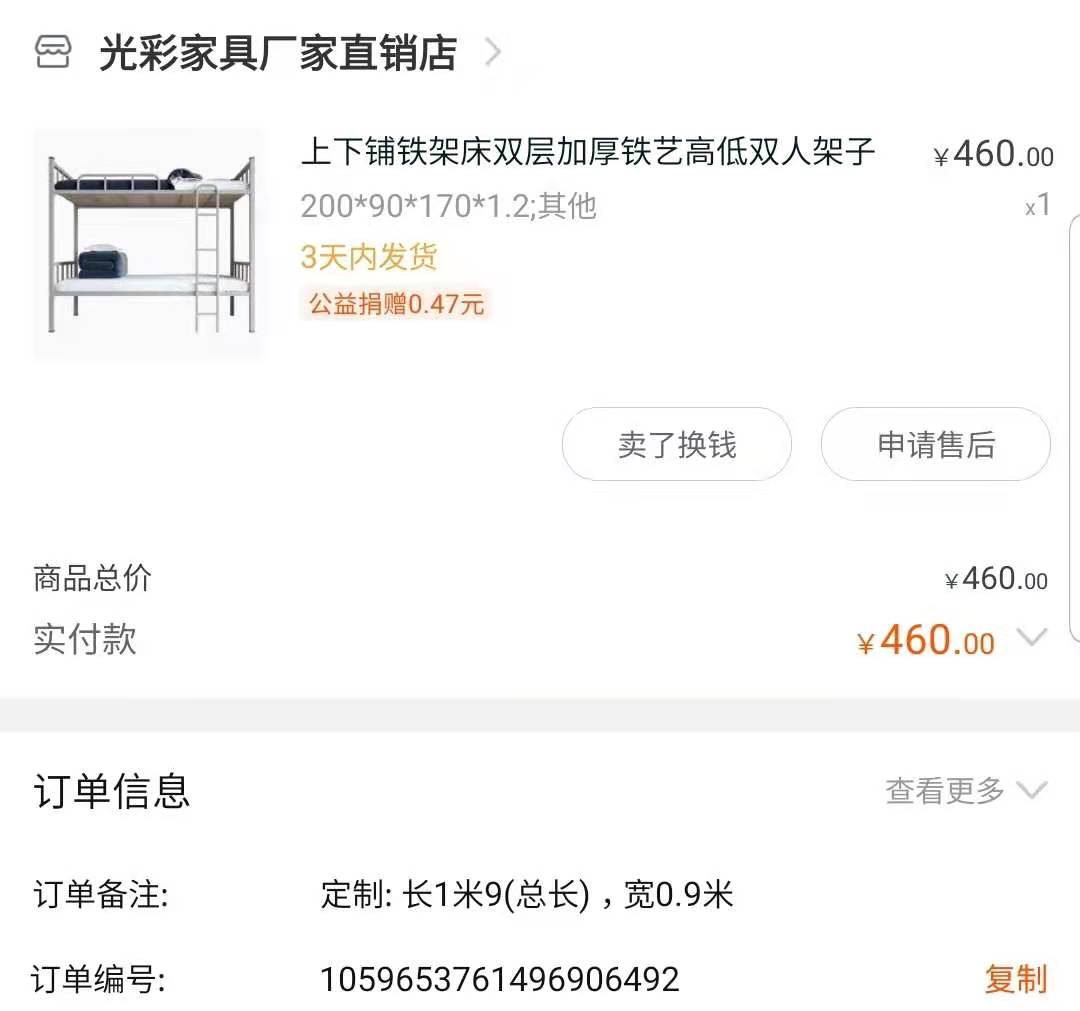 我们的是195cm*1.65cm,淘宝定制了190cm*90cm的上下铺铁床,花了大概六七百RMB,买之前忽略了踢脚线,床来了之后刚刚好放进去,一点儿多的空间都没有,有惊无险。淘宝上也有loft bed,我们当时考虑到稳定性+队友担心女佣睡上铺掉下来所以没有买。