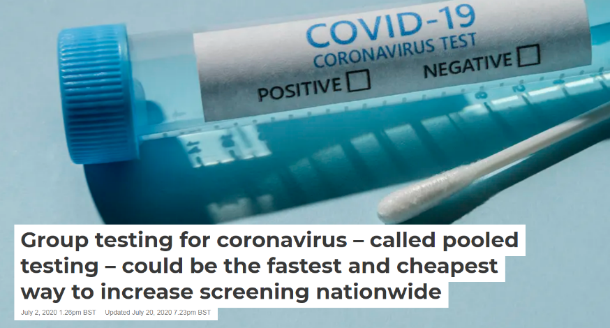 这种方法最早是由哈佛大学经济学家Robert Dorfman在20世纪40年代提出的,当时是用于检测二战士兵中有多少人携带梅毒。后来也常被用于筛查无症状人群有多少人携带比如衣原体和淋病病毒。红十字会也会用这种方法来筛查献血者中是否有人携带乙肝、艾滋病毒等。