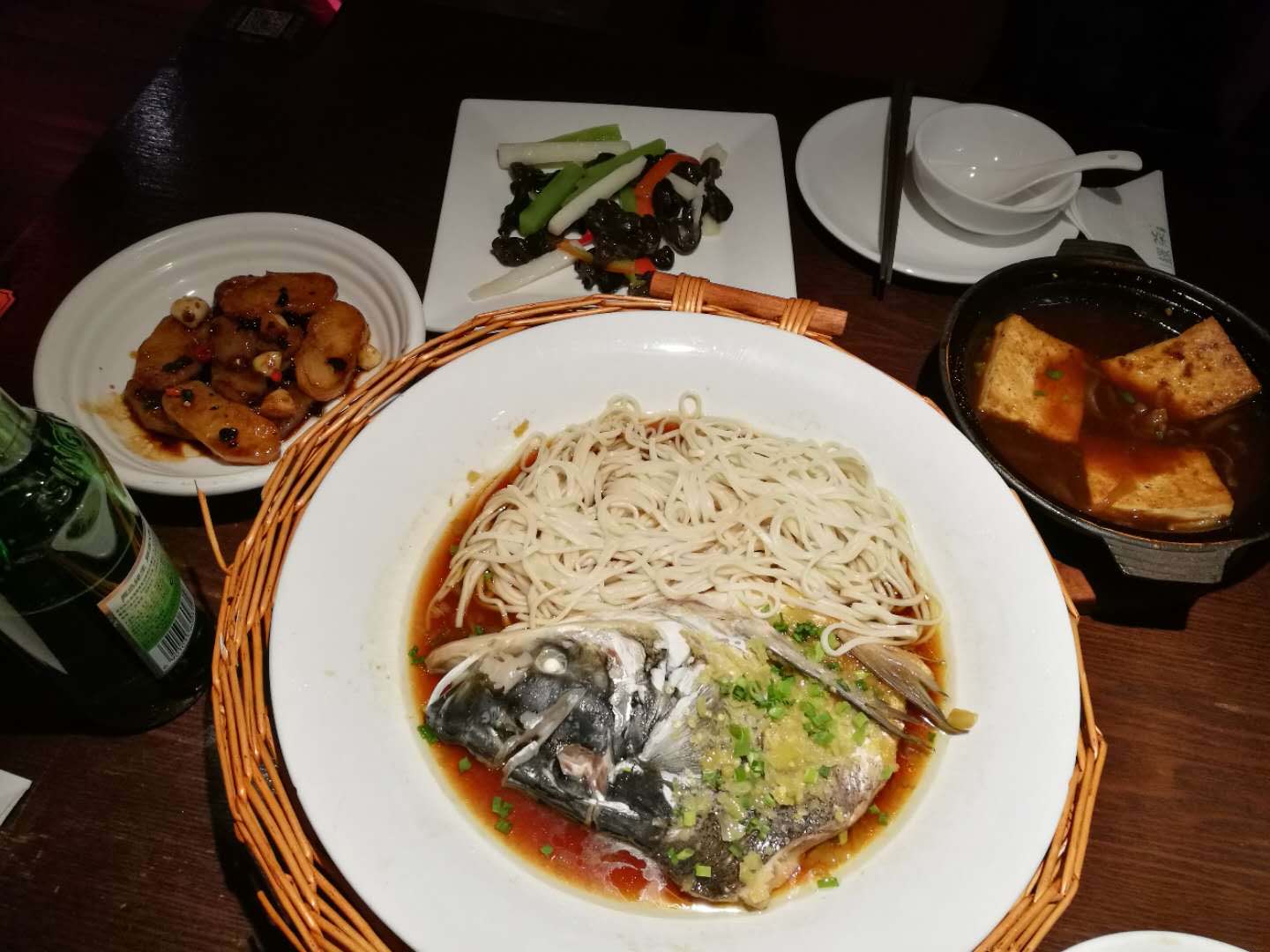 flyjc • • 33438 次浏览四道菜一例汤一瓶酒一份面一杯茶