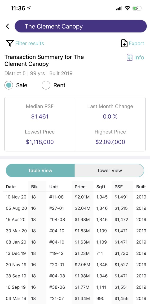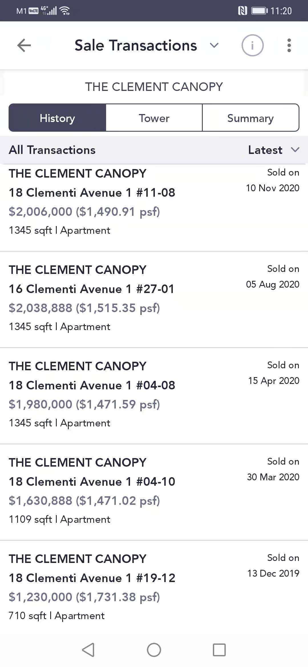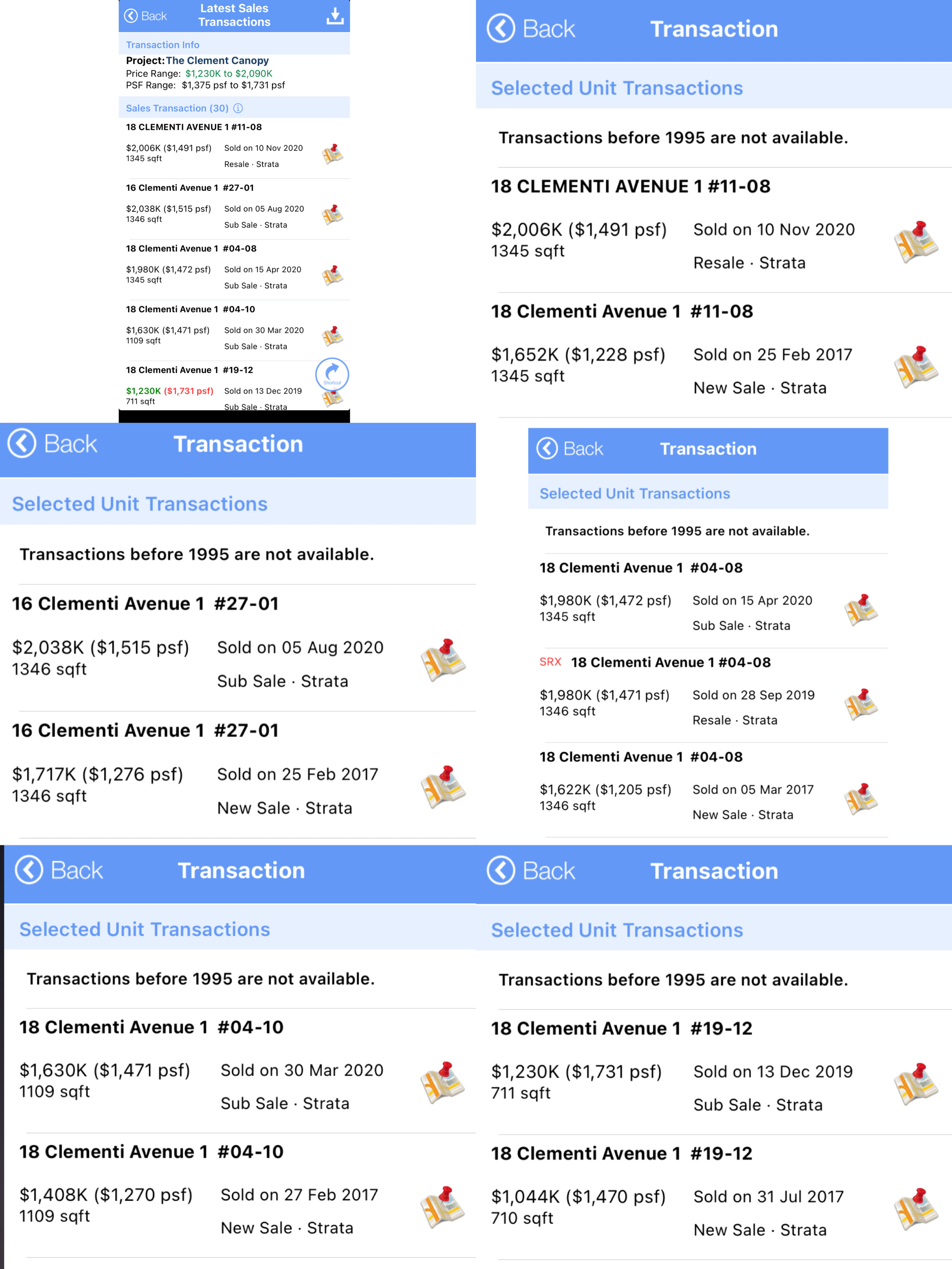截图几个 Clement Canopy 最近的几个成家单位可以参考第一手和最近成交价的价差