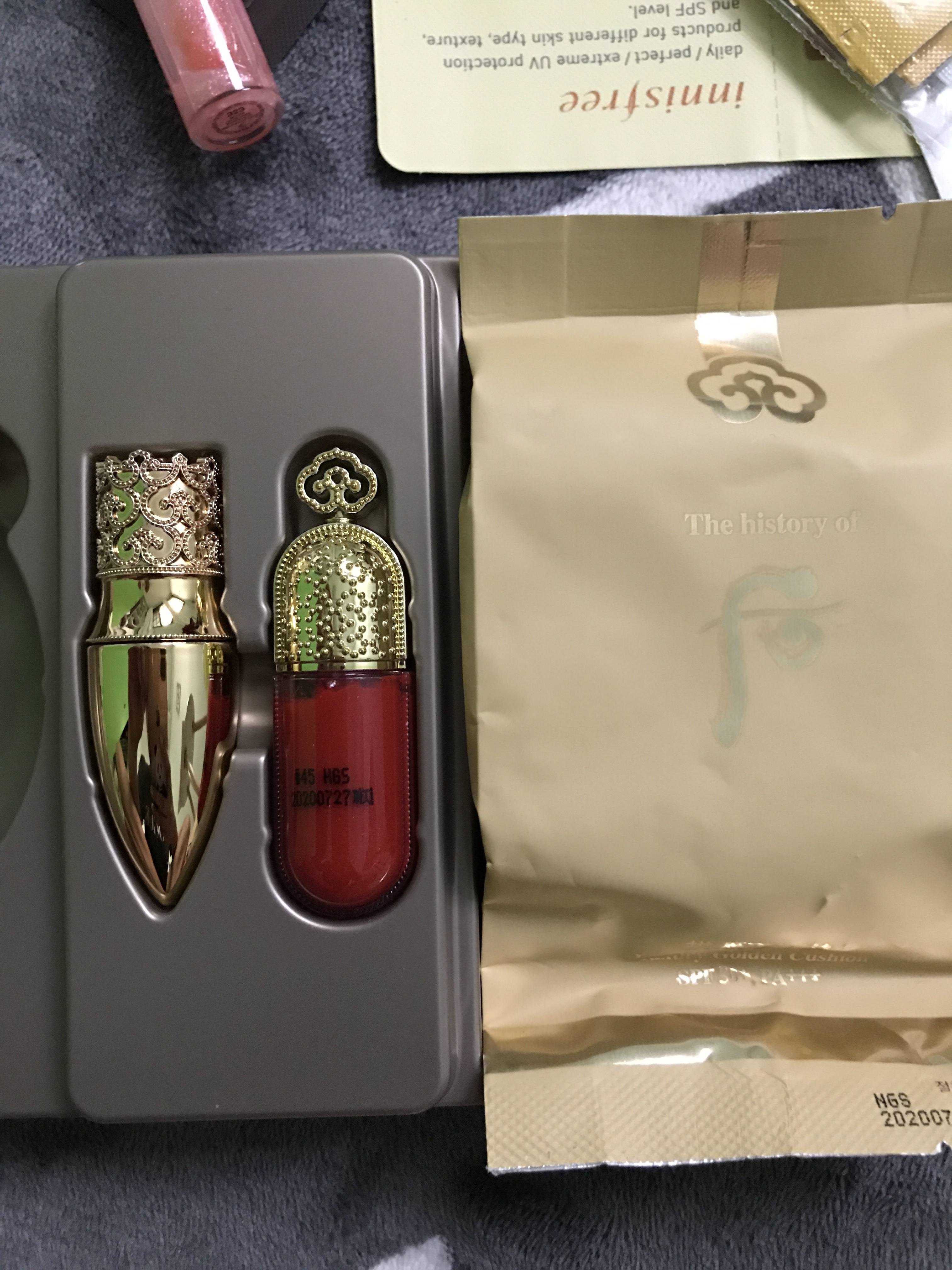 whoo气垫套装里的唇釉和口红据韩代妹纸说是正宫娘娘色