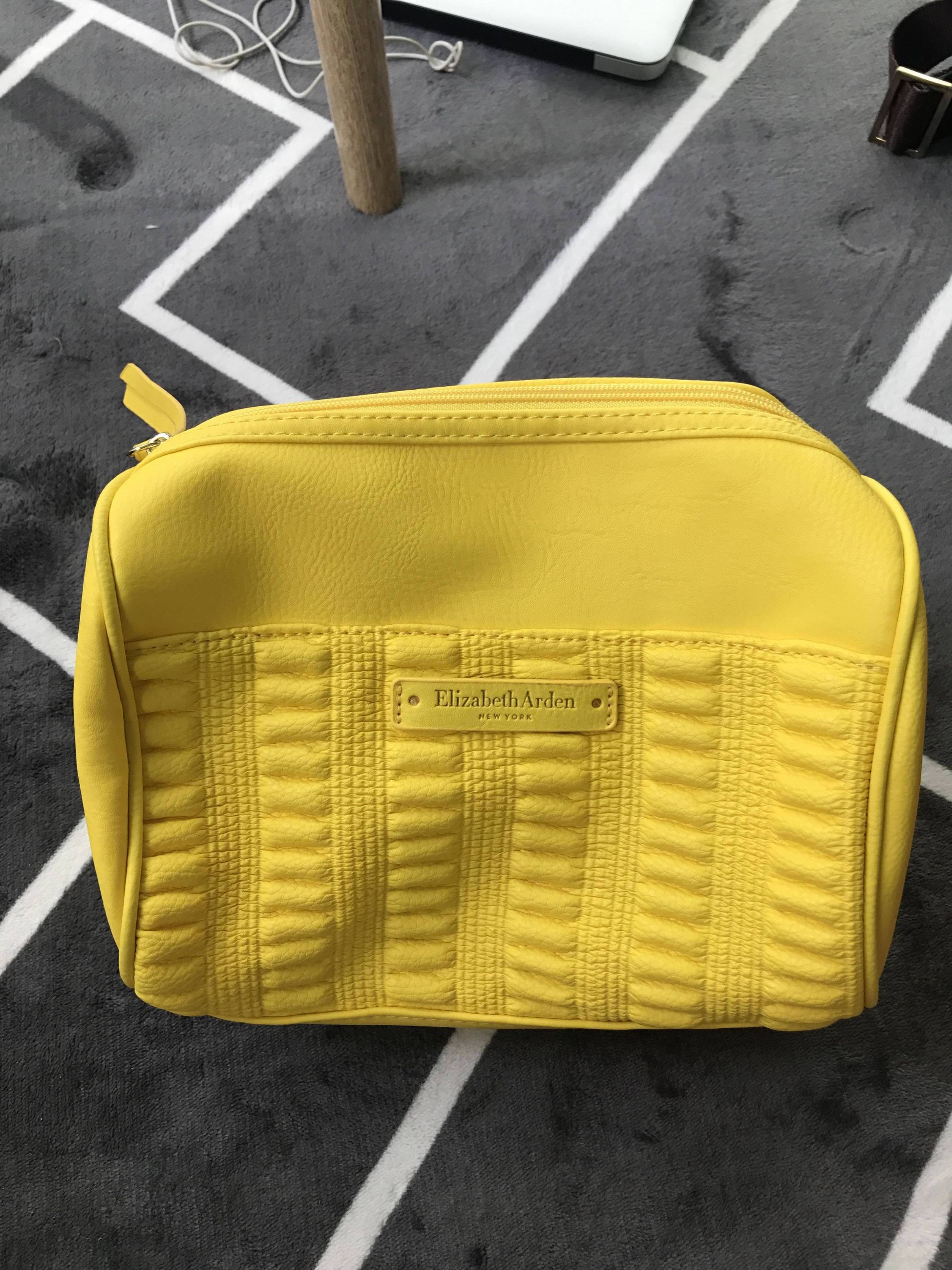 雅顿亮黄色皮质大化妆包颜色好靓丽青春呀,皮质手感做工都非常好,干干净净的,好大只很能装,8块
