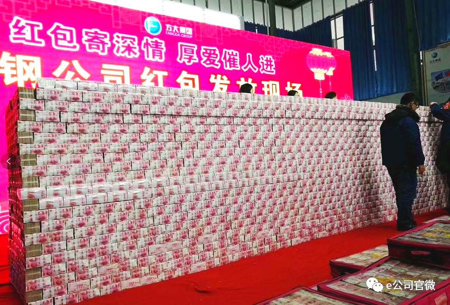 江西钢厂5亿年终奖分发现场 现金堆成墙
