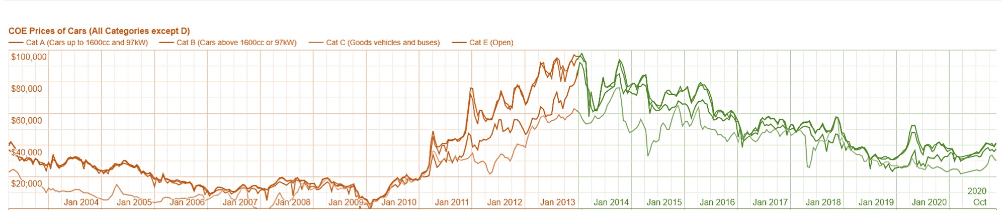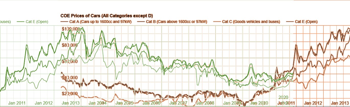10年一个轮回,这句话用在新加坡拥车证价格上,是再恰当不过的。