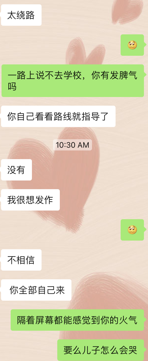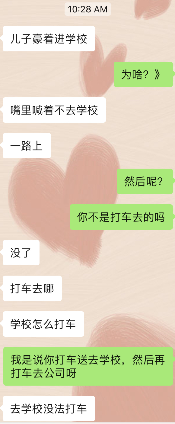 这个问题其实就是从今天早上送娃上学得来的平时我送队友接,今天娃脚趾受伤了,早上队友带去看医生,看完之后再送去学校,娃一路上碎碎念“我不想上学,我要回家”(复读机模式),这两天我送的时候也有遇到这个问题,在想会不会是因为12月升班换老师的原因,队友压抑着怒气把娃送去学校