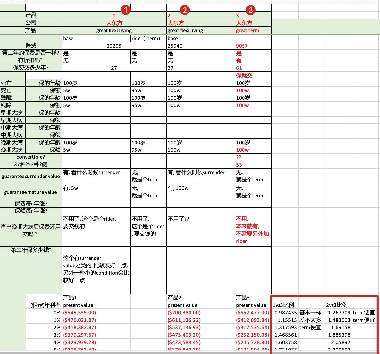 我没看懂我现在是比较 两个"保险产品" (保险产品a vs 保险产品b)