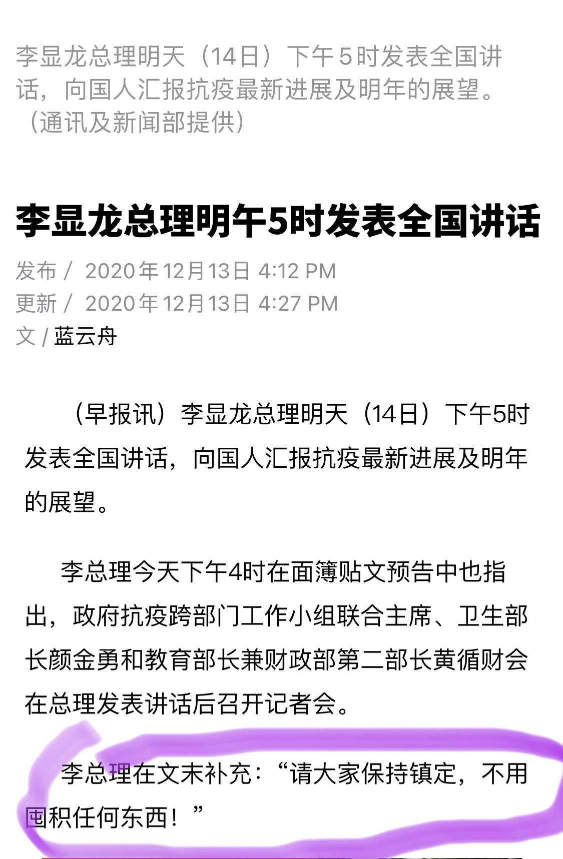 新加坡不会排在“疫苗队伍”最后在全球多家疫苗被证有效之际,李总理今日表示,新加坡已经与多家新冠疫苗的生产商达成了预定,以确保当有效疫苗问世时,新加坡不会排在队伍的最后。