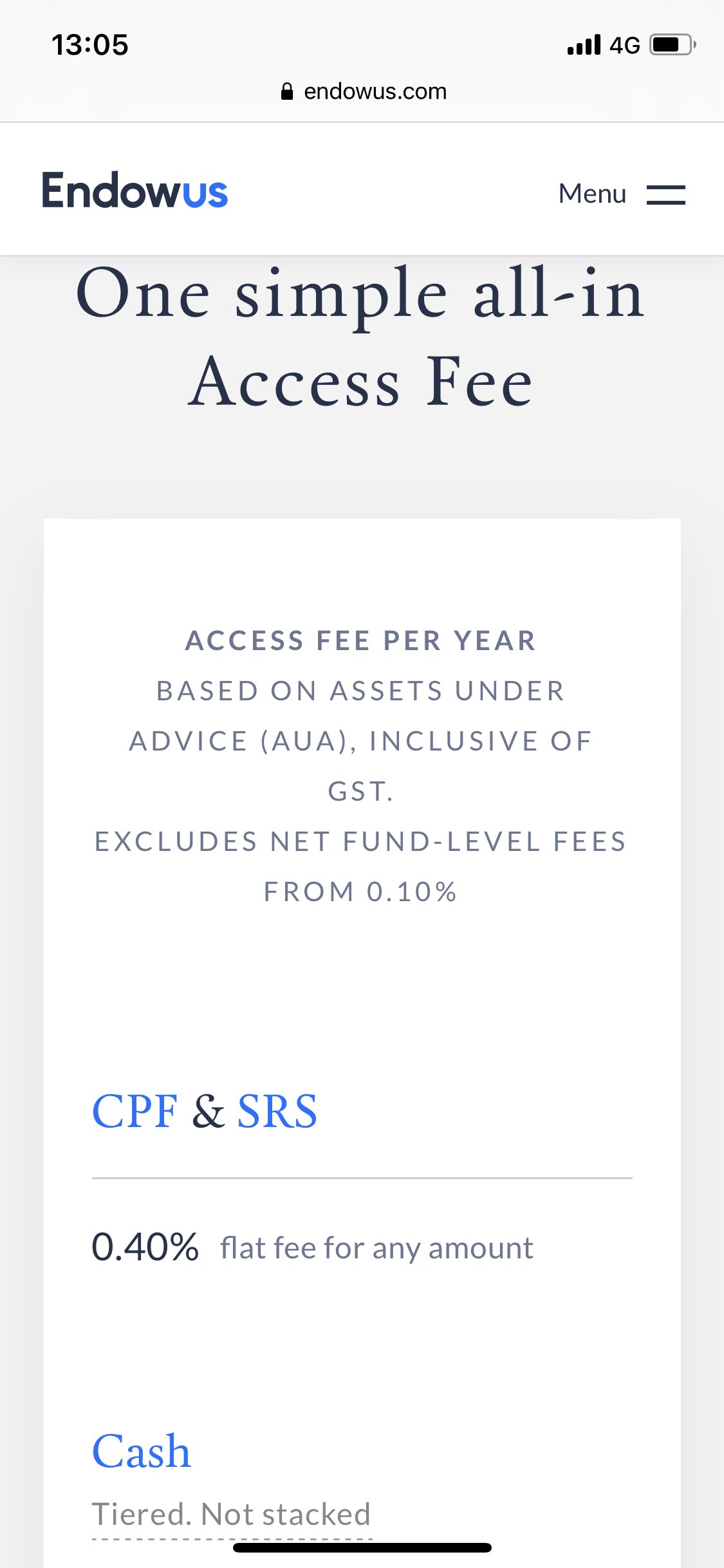 刚才去试了一下endowus发现和fsmone差不多,我只看到可以用cash和OA以及srs来投资,可以购买的是基金,类似于Franklin US Opportunities这种,不是股票,根本找不到我想要的指数基金,例如QQQ和spy这种。看来这个东西不适合我,所以走到最后之前退出了。