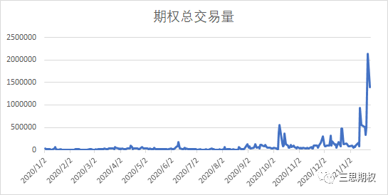 散户在逼空的时候,除了买入大量股票推高股价,同时又买入大量的看涨期权。近期几天的期权交易量已经远超去年总交易了。
