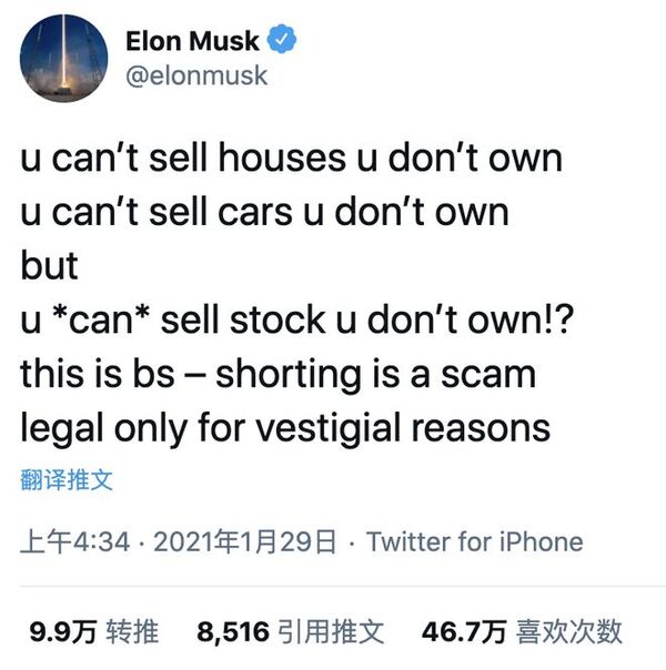 Elon Musk明显是站在散户的一边当然这是为了报当年被机构卖空的仇