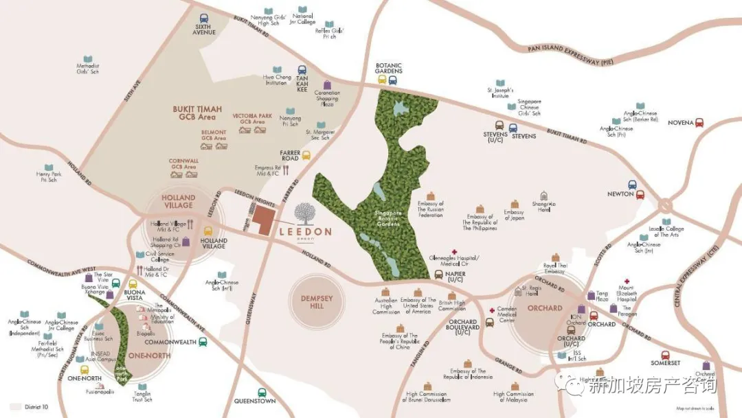 位于新加坡黄金地段第十邮区的荷兰村-武吉知马区域。毗邻武吉知马的低密优质洋房区,高层可俯瞰别墅风景。步行去世界文化遗产的植物园,尽情享受自然风光。喜欢热闹的朋友可以到邻近的荷兰村酒吧及Dempsey Hill美食中心欢度闲暇时光。