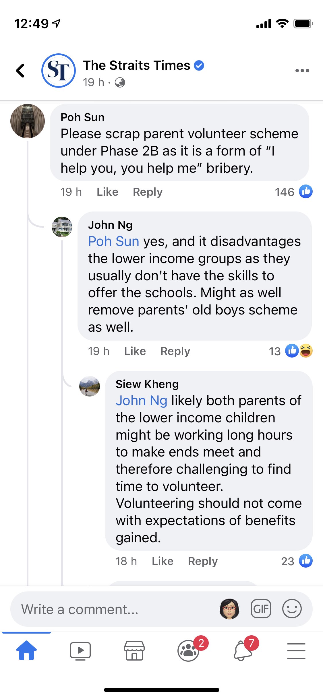 说贡献的话,校友也有贡献呀2b其实也有点贿赂性质(不是我说的,是fb和kiasuparents上面的土著们说的)很多人做义工并不是真的想做义工,只是为了进好学校。