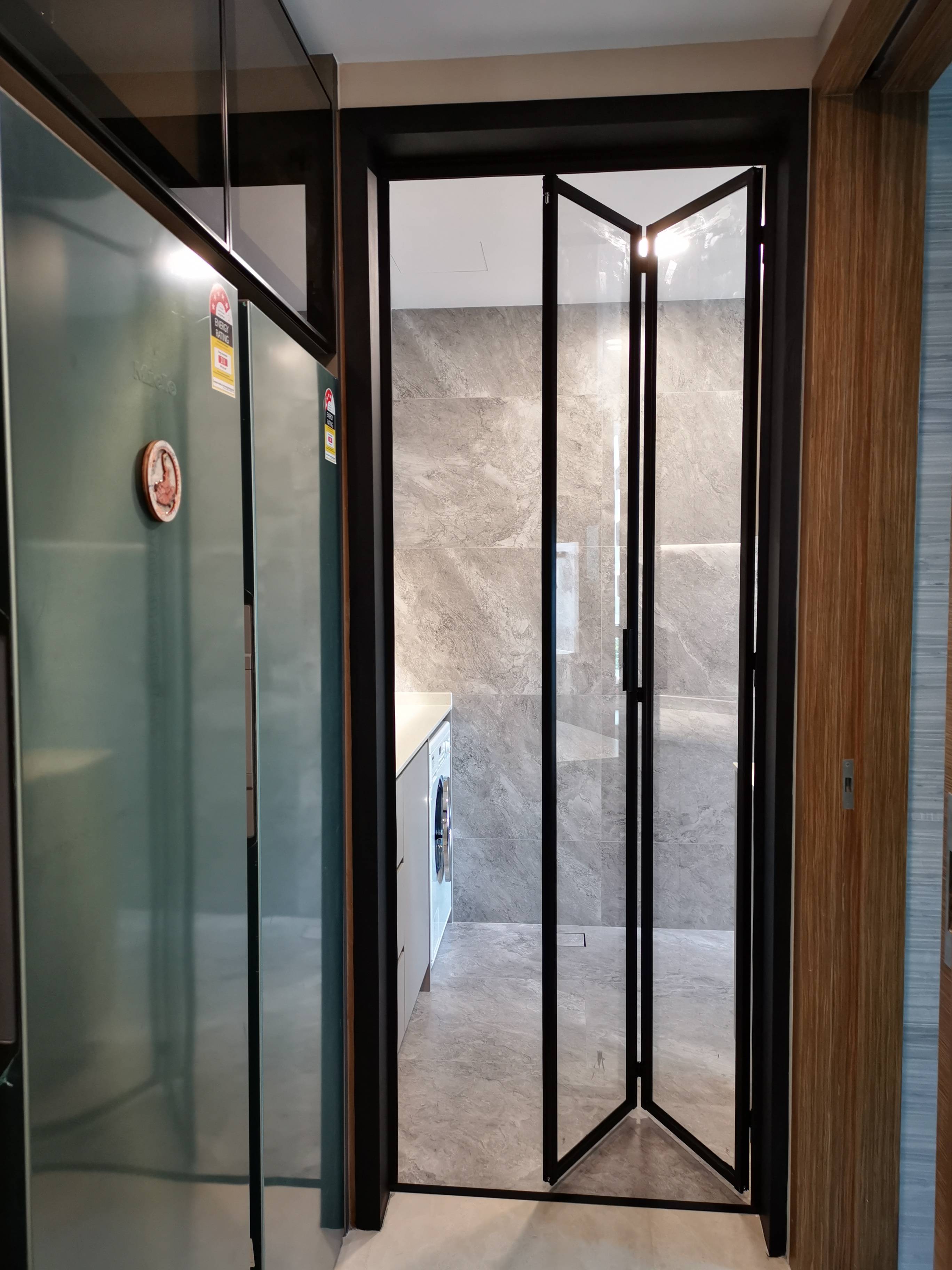 为了省空间我把厨房门拆了,换成下面这种窄框玻璃门。