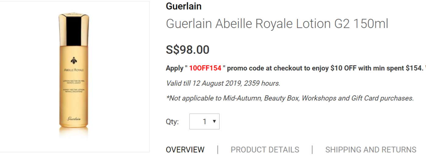 19. 复原蜜最佳CP Guerlain 帝皇蜂姿赋妍紧致精华露50ml超值套装,SGD168 有两套