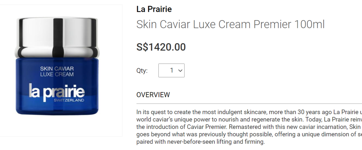 15. La Prairie SKIN CAVIAR蓝鱼子琼贵面霜100ml白盒试用装,SGD620只有1个