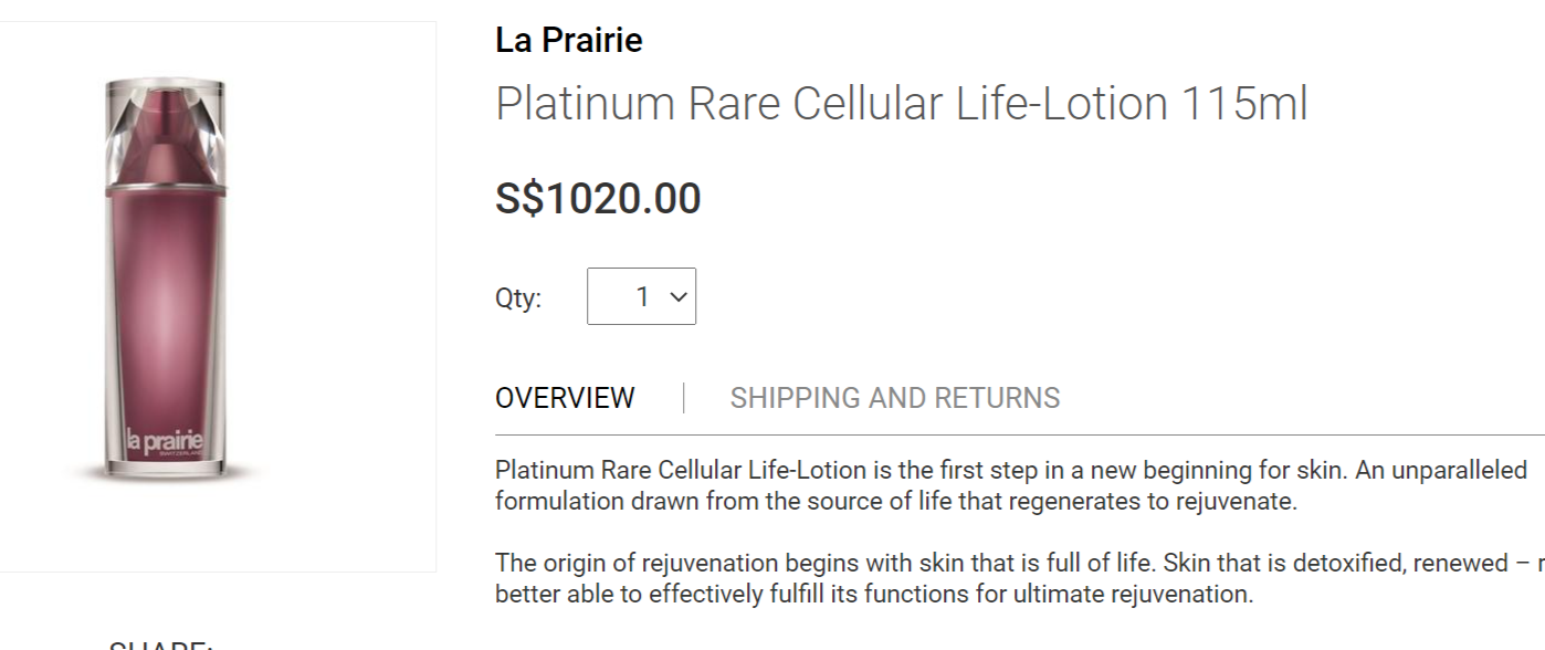 2. La Prairie 臻爱铂金焕颜精粹露/精华水10ml,SGD32 只有一个