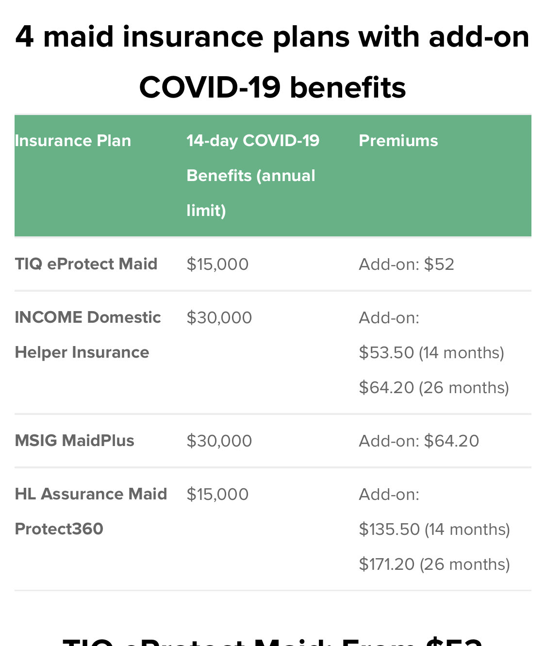 人力部的条例是要有1万以上的医药保险据说现有的女佣保险大都包括了,只是如果还想有额外的保险的话,保险公司也有这个配套。