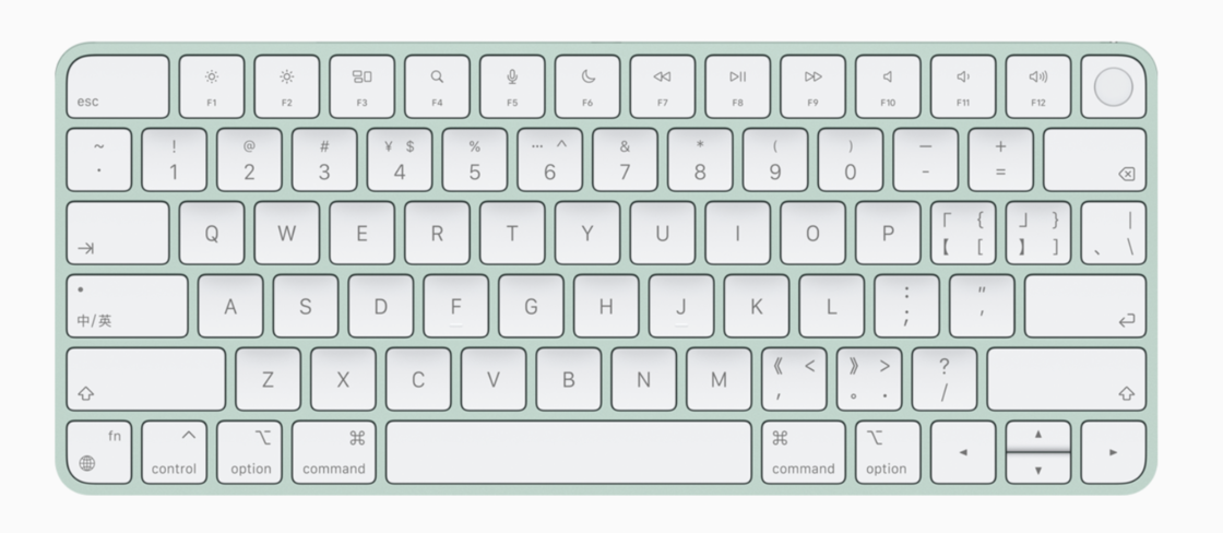 配件方面,妙控鼠标、妙控键盘和触控板新增了与 iMac 相同的 7 种颜色,根据 iMac 色系进行搭配。其中,妙控键盘增加了 Emoji 表情按键、Spotlight 搜索按键、听写按键、勿扰按键与锁定按键,支持触控 ID 指纹识别功能。
