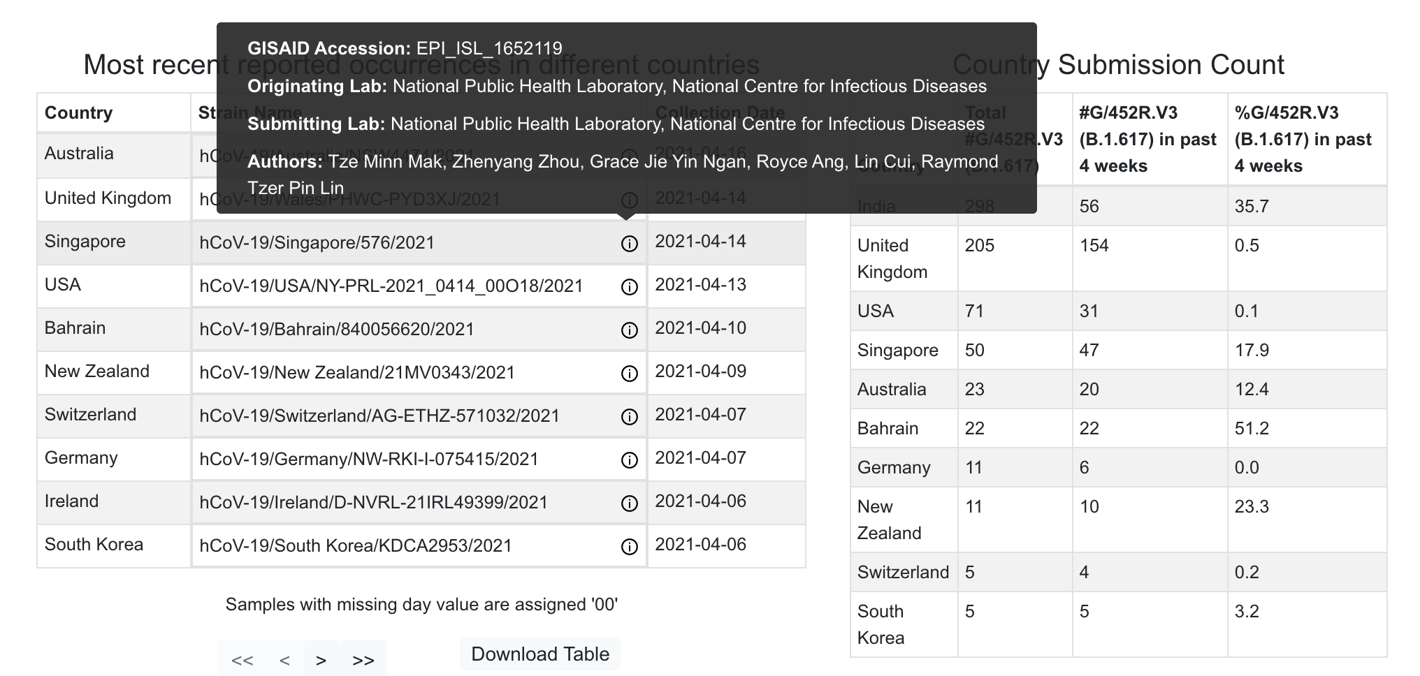有人知道新加坡有没有发现 印度的 double mutant covid