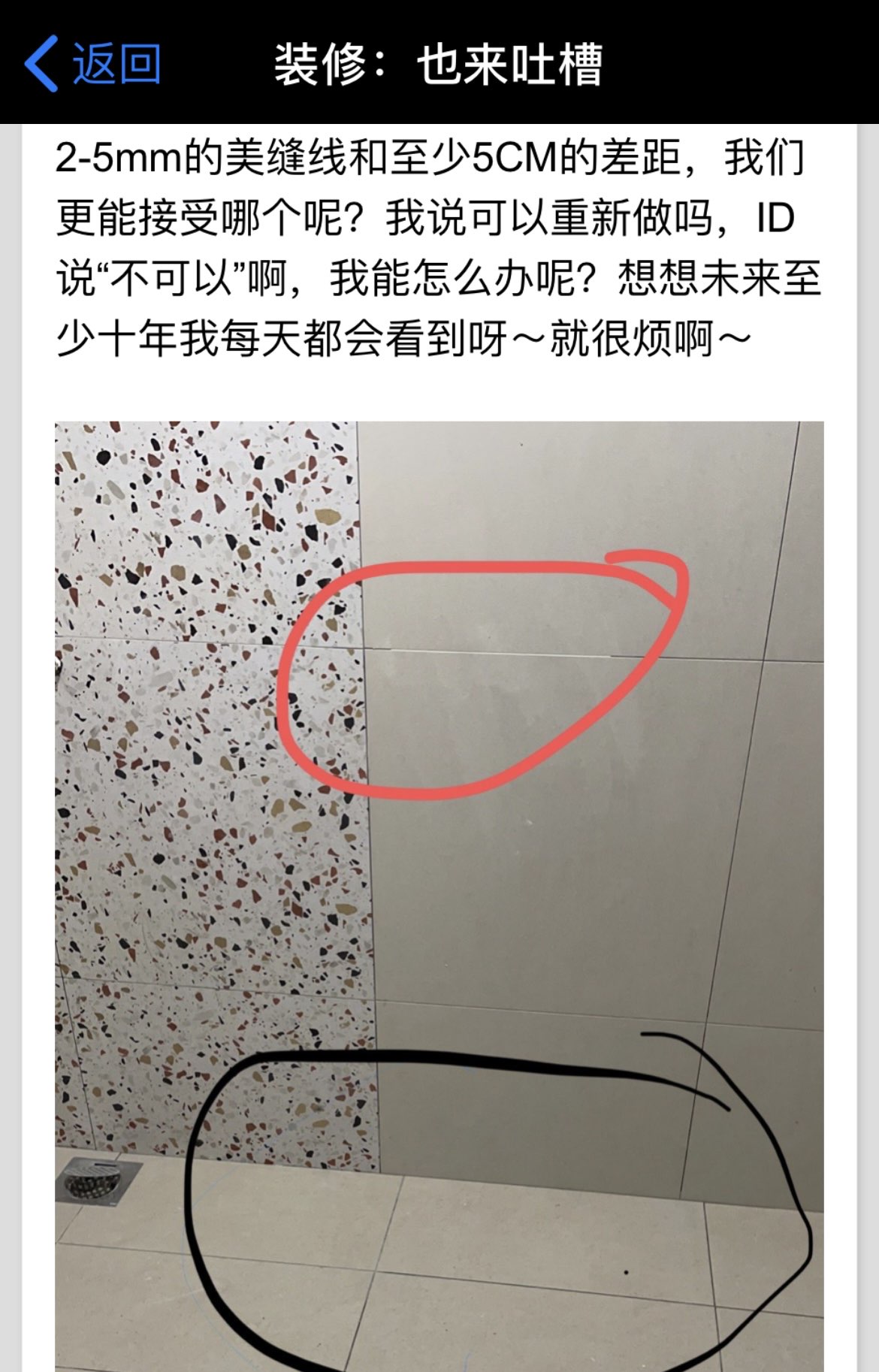 唯一铺砖的地方(图中的石头纹路的墙体部分)被我老公念了好几次说id不负责,一眼盯不到就有问题 放个图上来看看哪里有问题,哈哈 看了以上吐槽的砖缝现在觉得id好像有点委屈