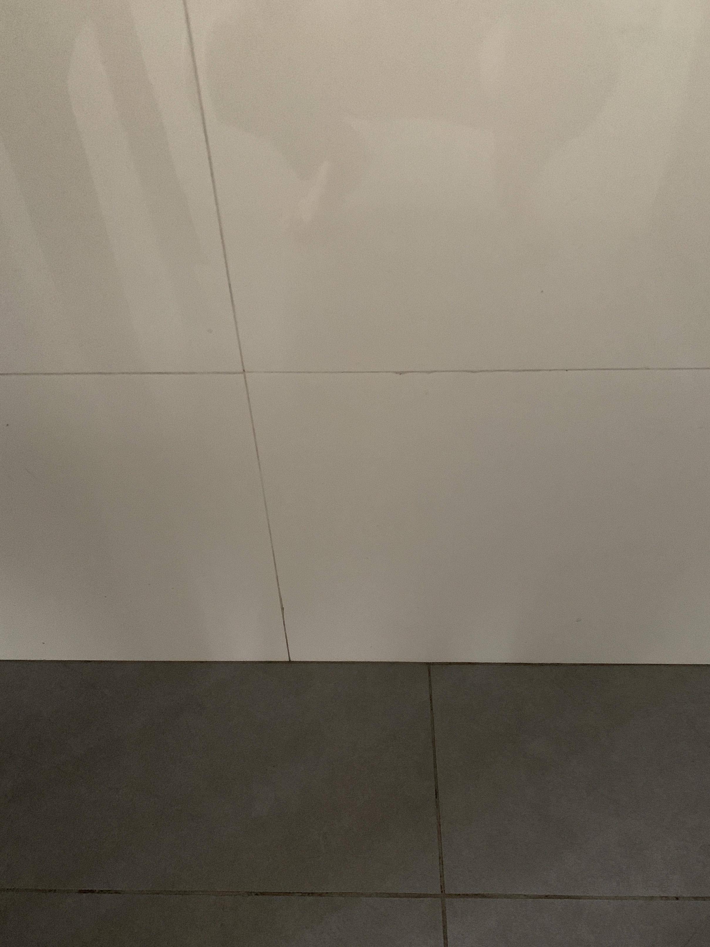 比较美观的做法是墙砖的缝一直延伸到地砖,跟地转的缝对齐,而不是这样墙砖的缝把地砖一分为二 -