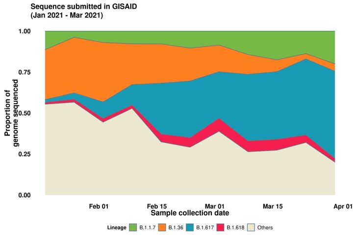 B.1.617(俗称的“双重突变”)是新一代毒王,正在印度肆虐,这已经不是啥新闻了: